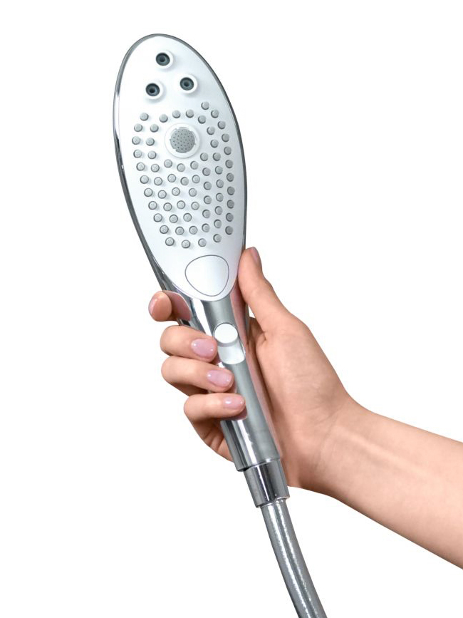 Hlavici můžete ovládat jednou rukou. Nastavení trysek měníte jediným tlačítkem a pomocí posuvného tlačítka pro plynulou změnu intenzity tlaku vody si snadno přizpůsobíte potěšení přesně podle své nálady – od jemného pohlazení až po silný proud.