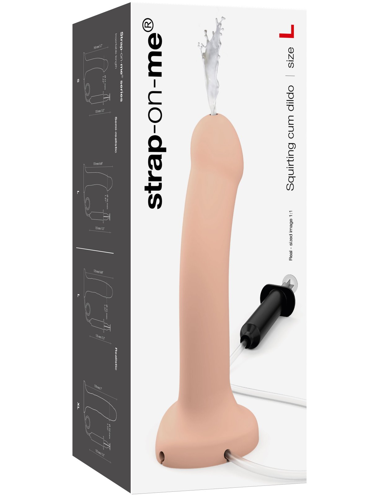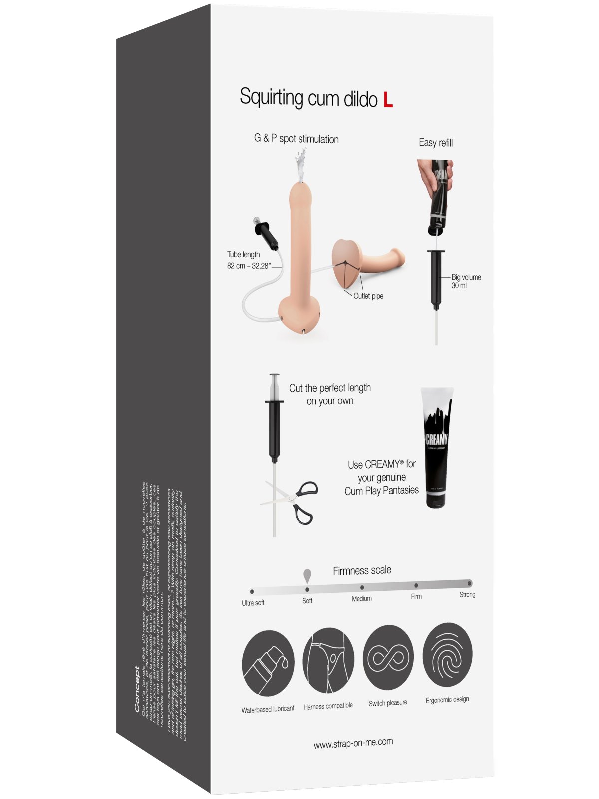 Stříkací dildo má jednoduchý mechanismus pro výstřik umělého ejakulátu a dá se použít i jako připínák. Potěší vás jak během sólo akce, tak i při partnerských hrách.