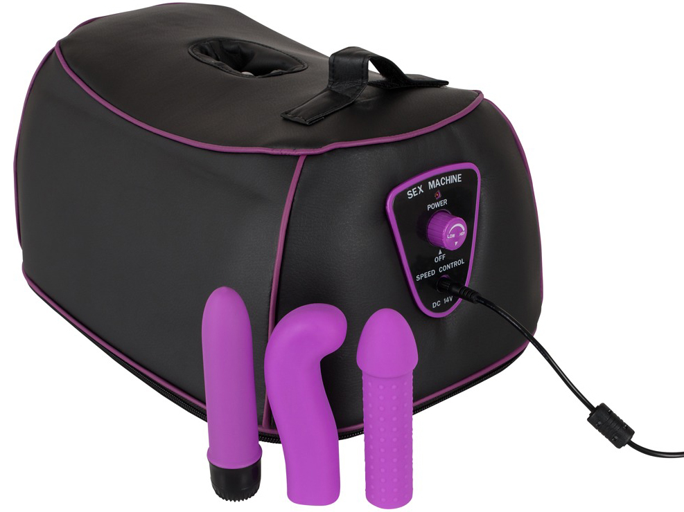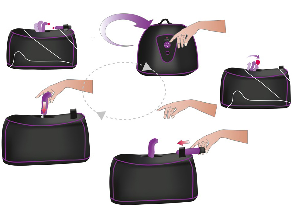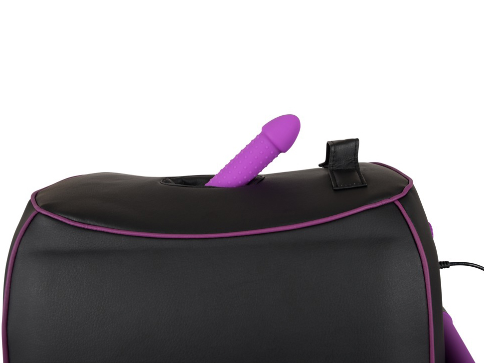 V balení najdete i vibrátor, který můžete využít jako samostatnou hračku, nebo ho přichytíte pomocí suchého zipu do pásku nahoře na stroji a necháte si jím dráždit klitoris, případně hráz a penis, pokud si stroj zrovna osedlá váš protějšek.