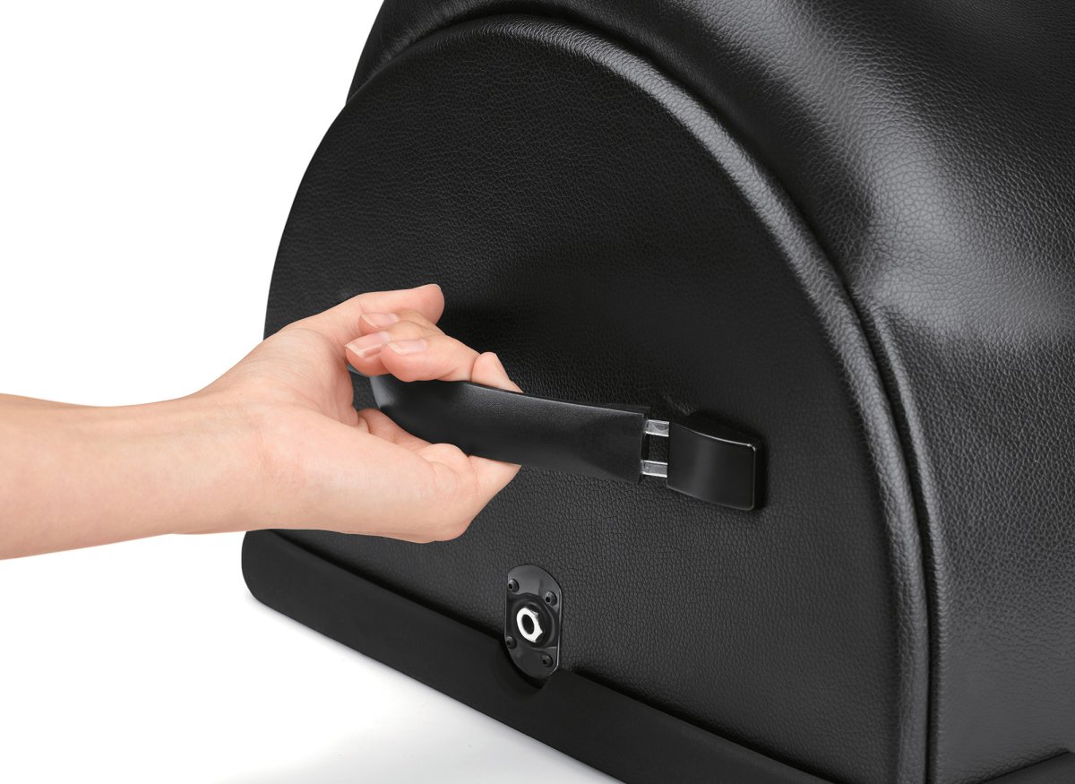 Samotný stroj je tvarovaný jako sedlo, takže je velice pohodlný. Povrch je z umělé kůže, která se snadno čistí. Díky madlům po stranách se snadno přenáší a protiskluzové silikonové podložky zajišťují stabilitu a ochranu před poškrábáním podlahy či nábytku.