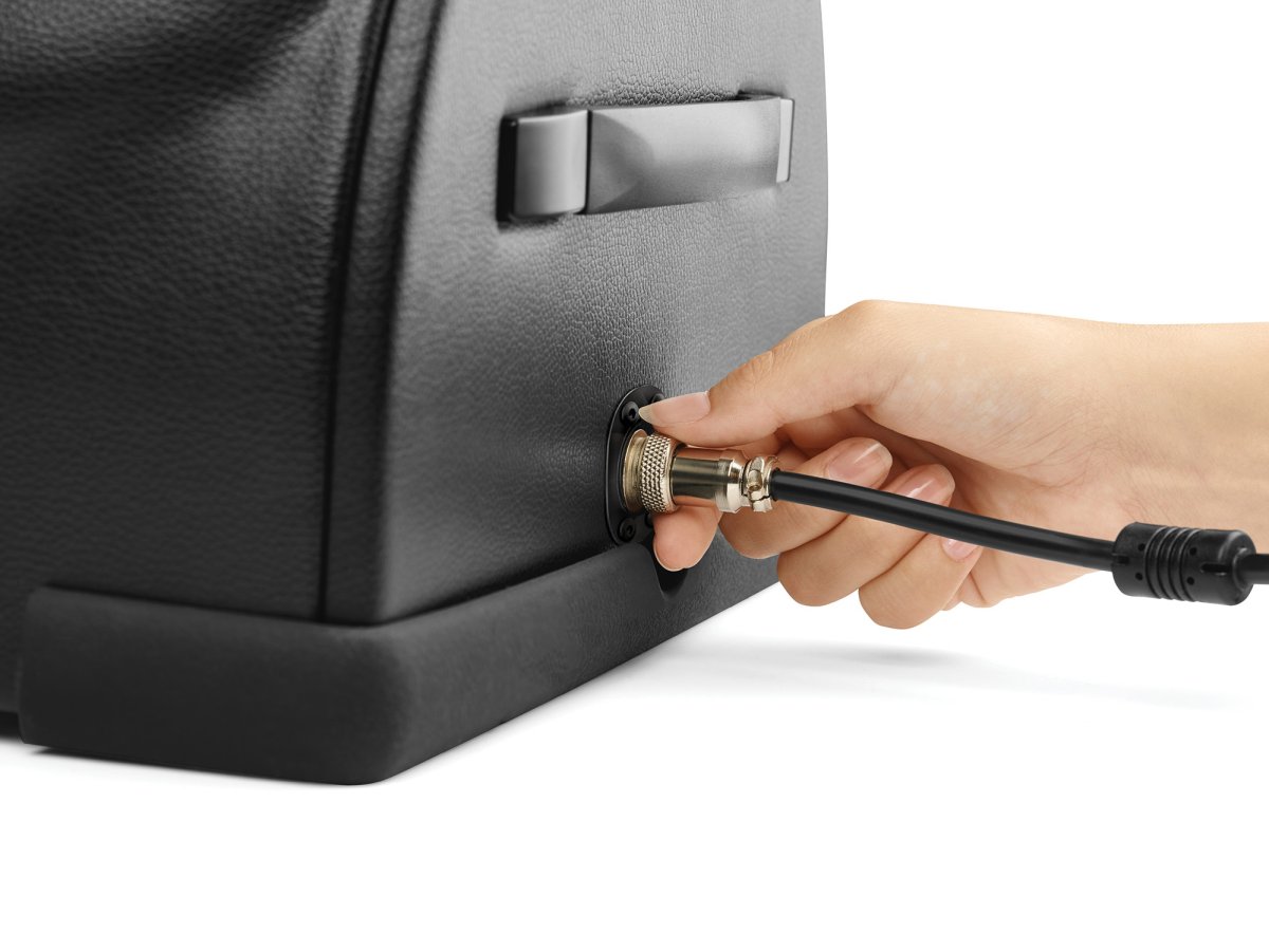 Stroj ovládáte pomocí dálkového kabelového ovladače nebo mobilem přes Bluetooth (dosah až 9 metrů).