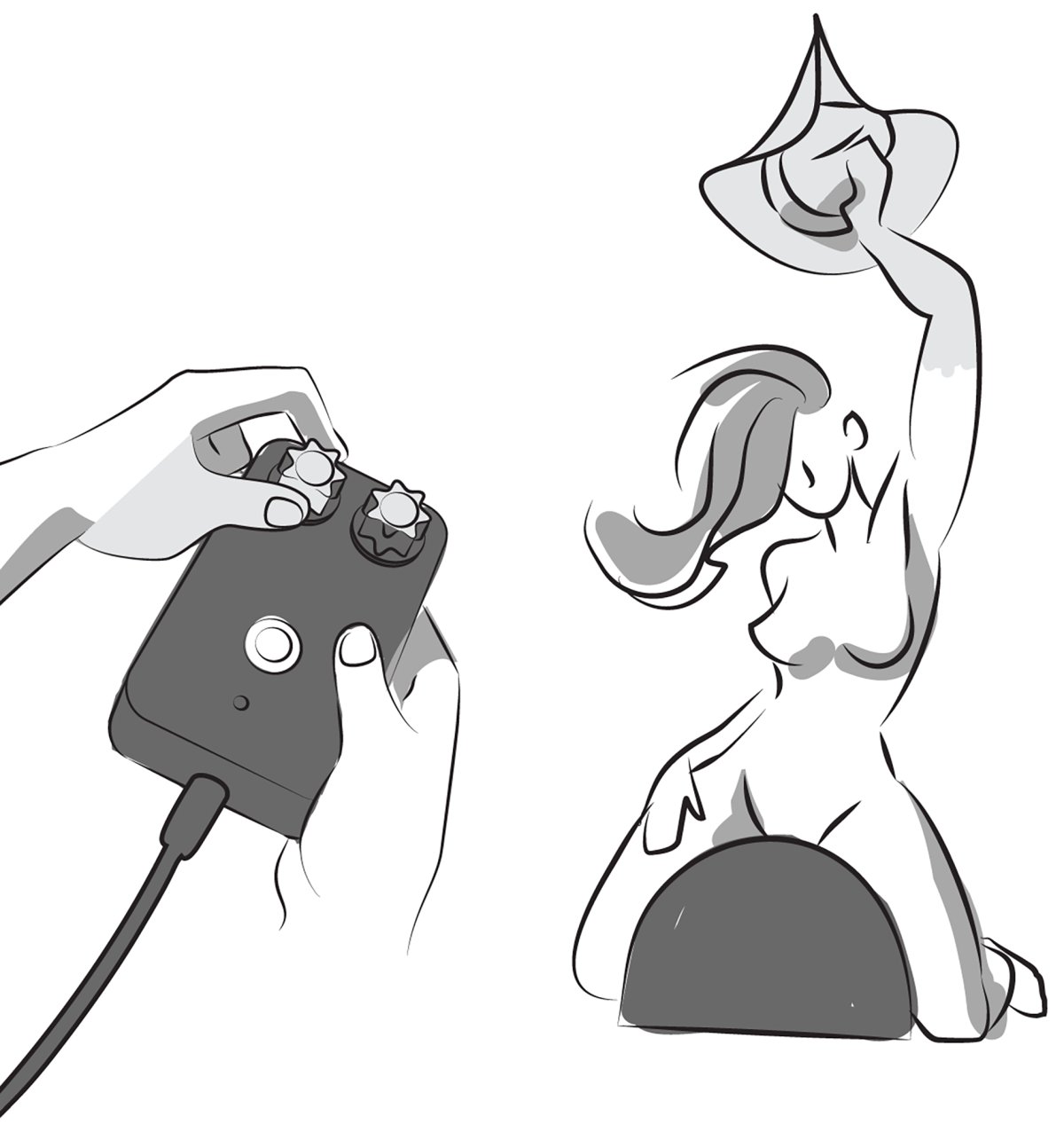 - Nepenetrační nástavec – má jednu stimulační vlnu a drobné výstupky pro dodatečné potěšení. Slouží pro grinding (stačí nasednout a třít o něj své intimní partie).