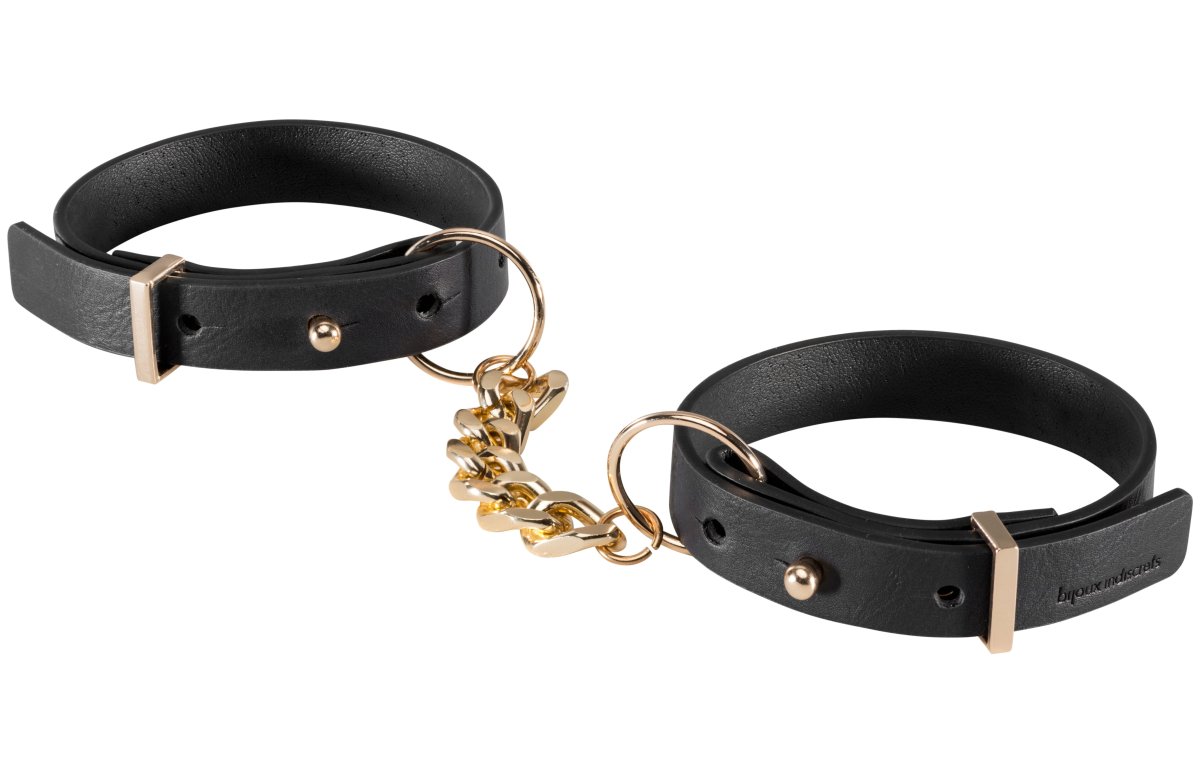 Pouta jsou vyrobena z umělé kůže, takže jsou 100% vegan, a jsou spojena kovovým řetízkem. Když si obě pouta nasadíte na jednu ruku, promění se ve stylový náramek.