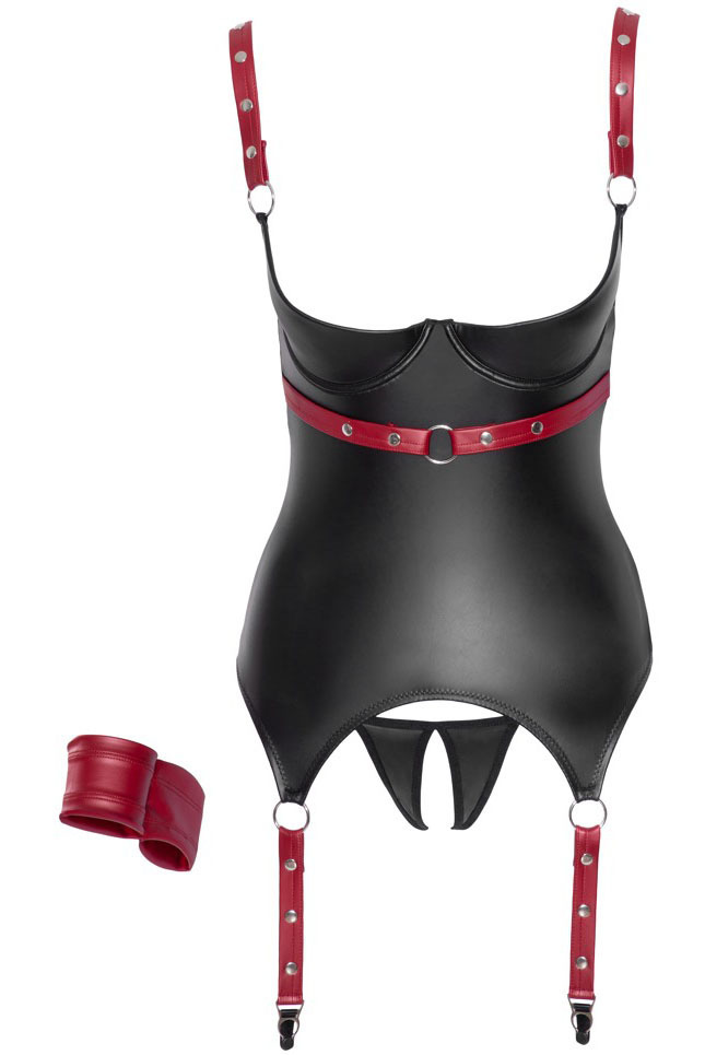 Top s odhalenými ňadry a podvazky + obojek pouta a tanga Cottelli Collection