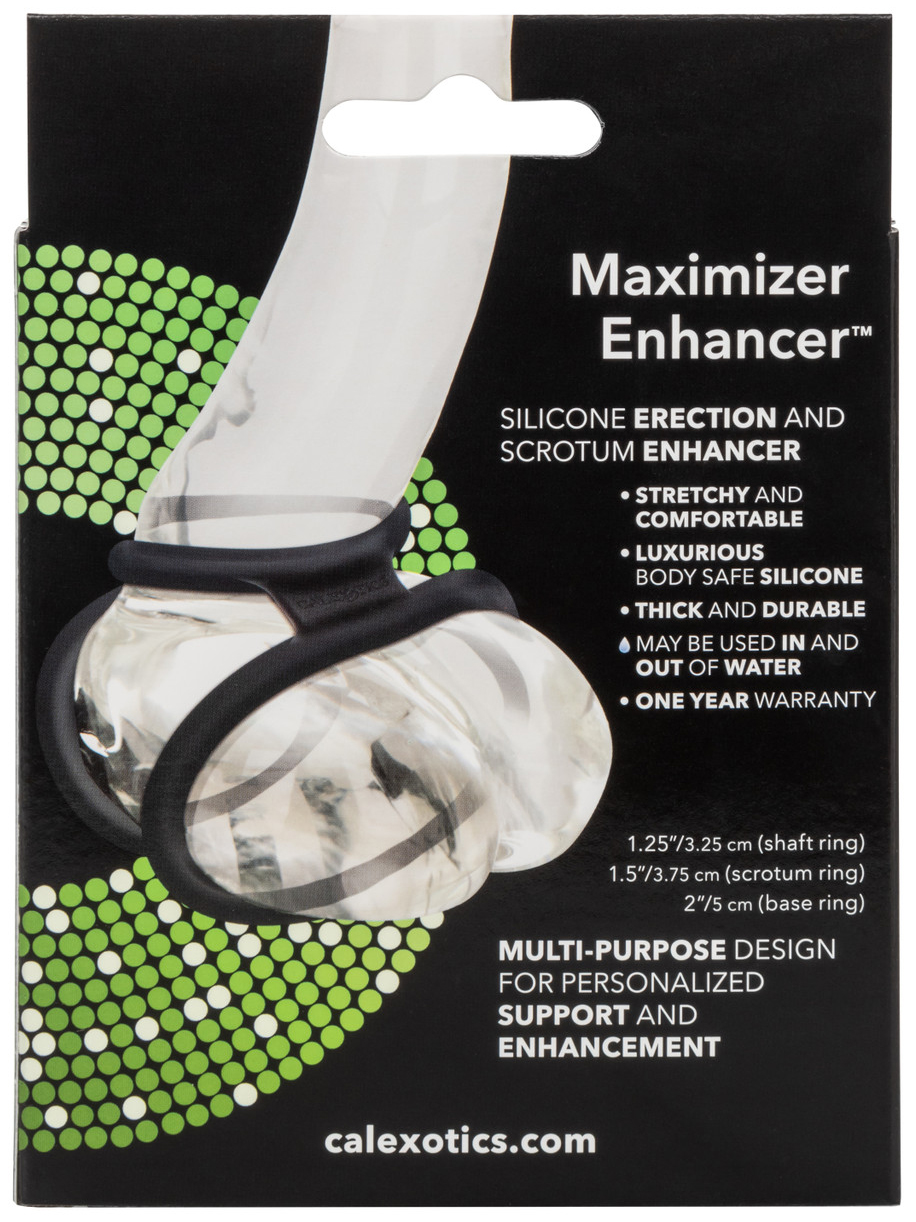 Maximizer Enhancer se skládá se ze 3 spojených kroužků o různém průměru – můžete jím zaškrtit penis a varlata na několik způsobů.