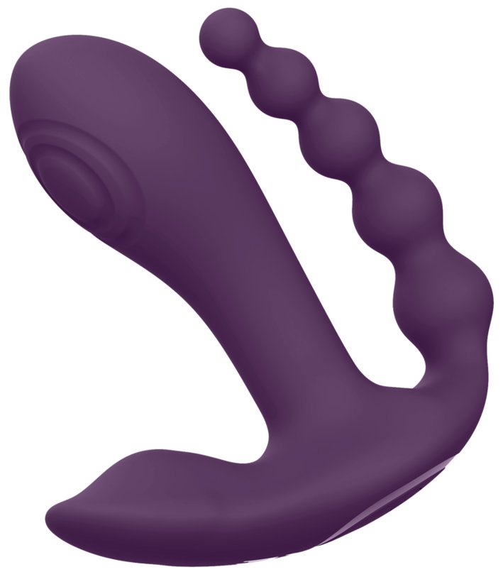 Trojitý vibrátor Kata potěší bod G, klitoris a anální otvor najednou. Dá se ovládat dálkovým ovladačem, takže je vhodný i na párové hry.
