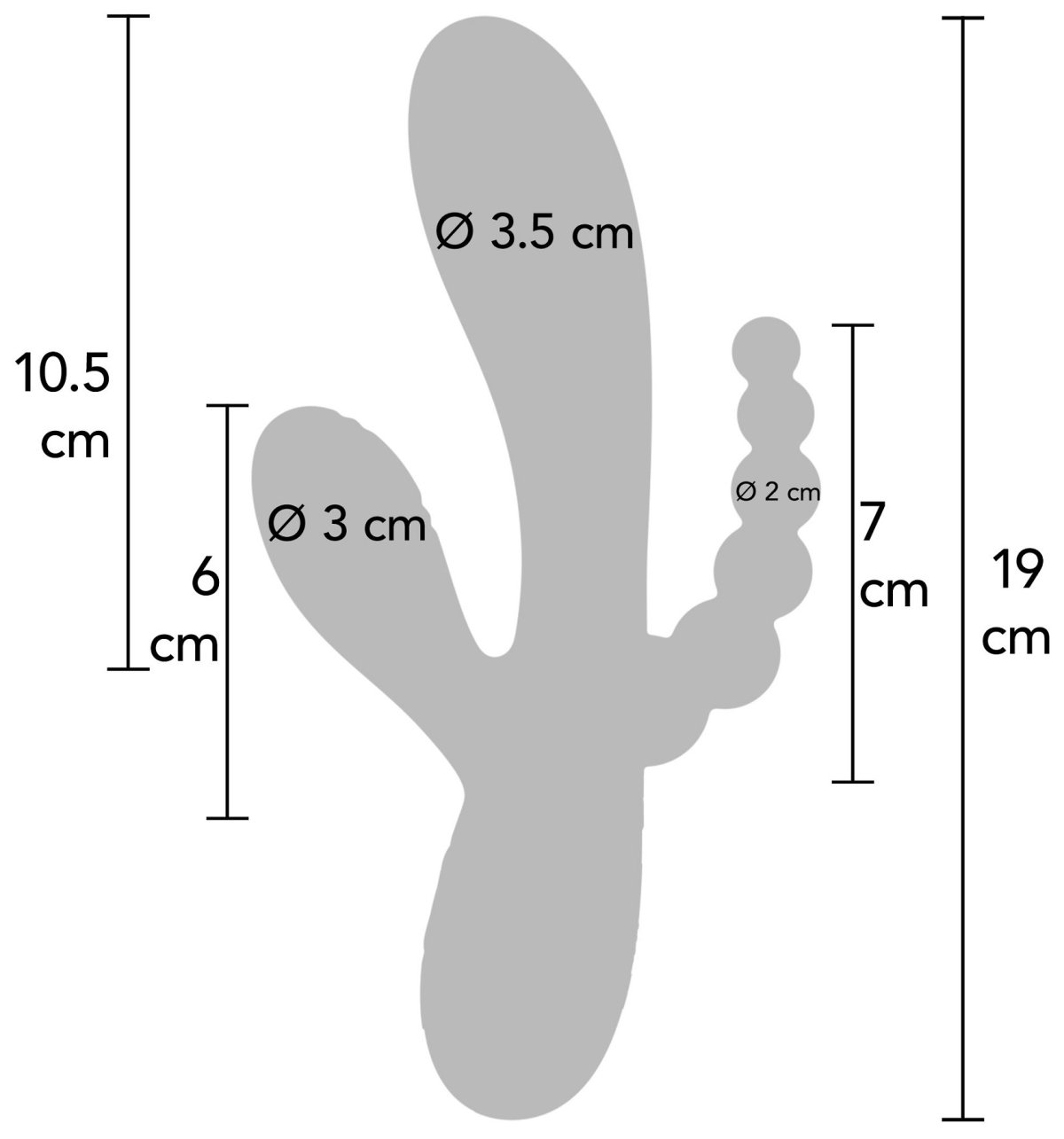 - Část pro stimulaci bodu G: zasunutelná délka 10,5 cm, max. průměr 3,5 cm