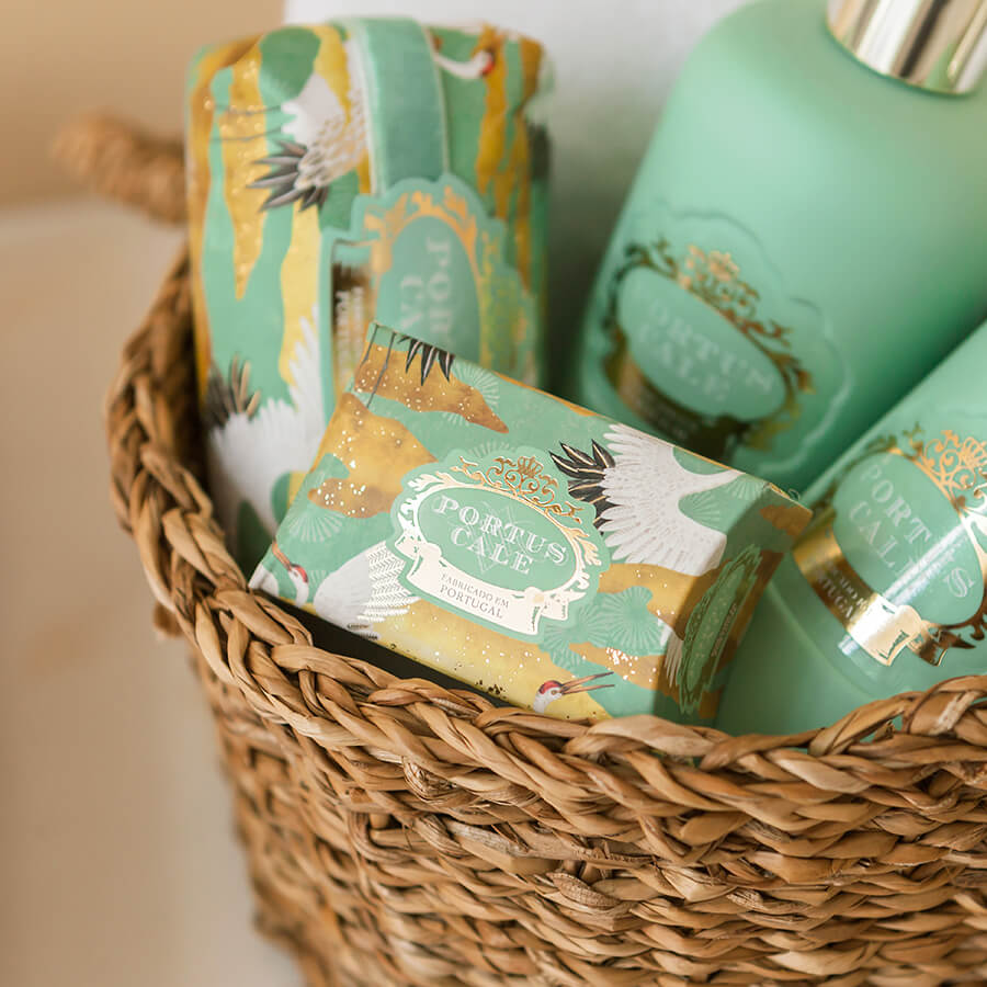 Tuhé mýdlo Portus Cale s vůní yuzu, vetiveru a mandarinky je ručně zabalené do hezké papírové krabičky.