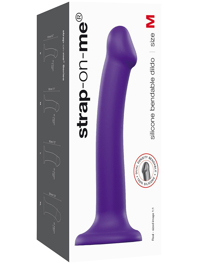 Dildo Strap-On-Me má pevné tvarovatelné jádro – můžete ho ohnout a natvarovat podle potřeby, přičemž si tento nový tvar udrží. Díky přísavce lze použít i jako připínák.