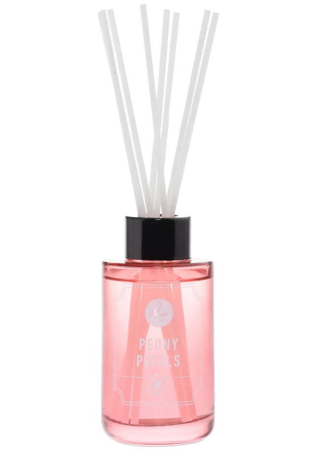 Tyčinkový difuzér Peony Petals od DW Home přinese do vašeho domova sladkou vůni okvětních lístků pivoňky s tóny zahradní růže, frézie a měsíčku.