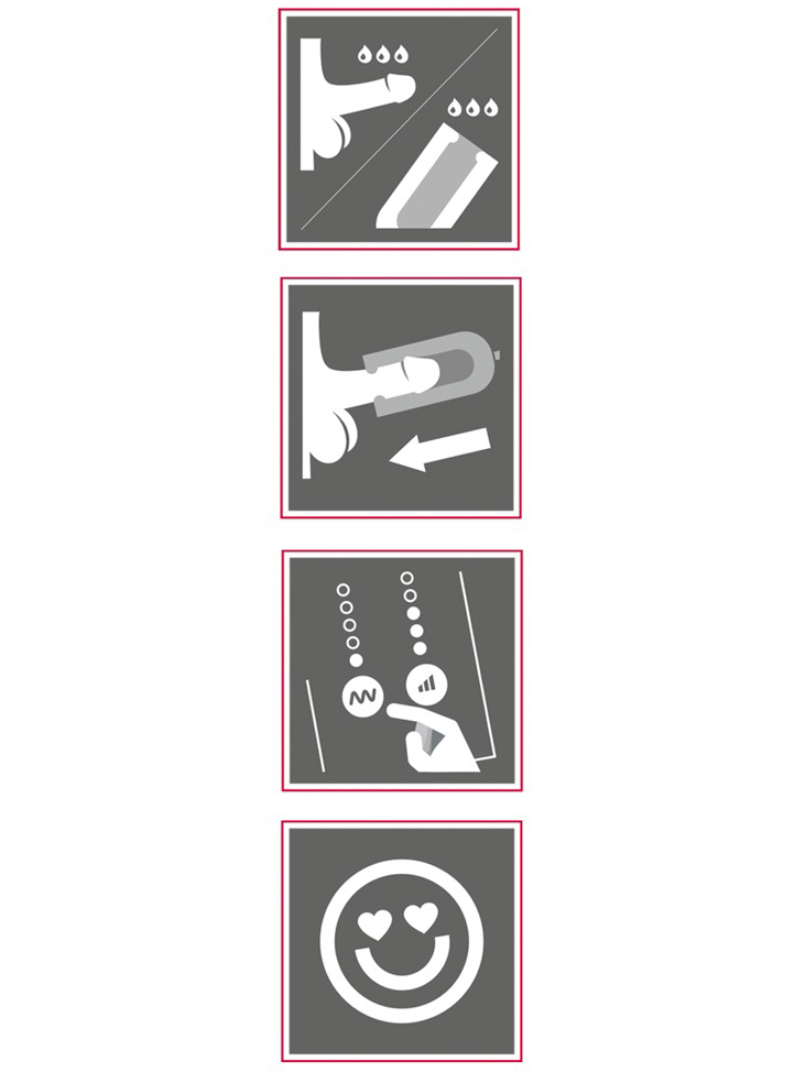 Intenzitu a rychlost sání nastavíte dvěma samostatnými tlačítky. Na výběr máte z 5 úrovní intenzity sání a 5 rychlostí = 25 různých možností. Sací impulsy se pohybují od 42 po 109 za minutu, sací výkon pak můžete měnit v rozmezí 16 až 30 W.