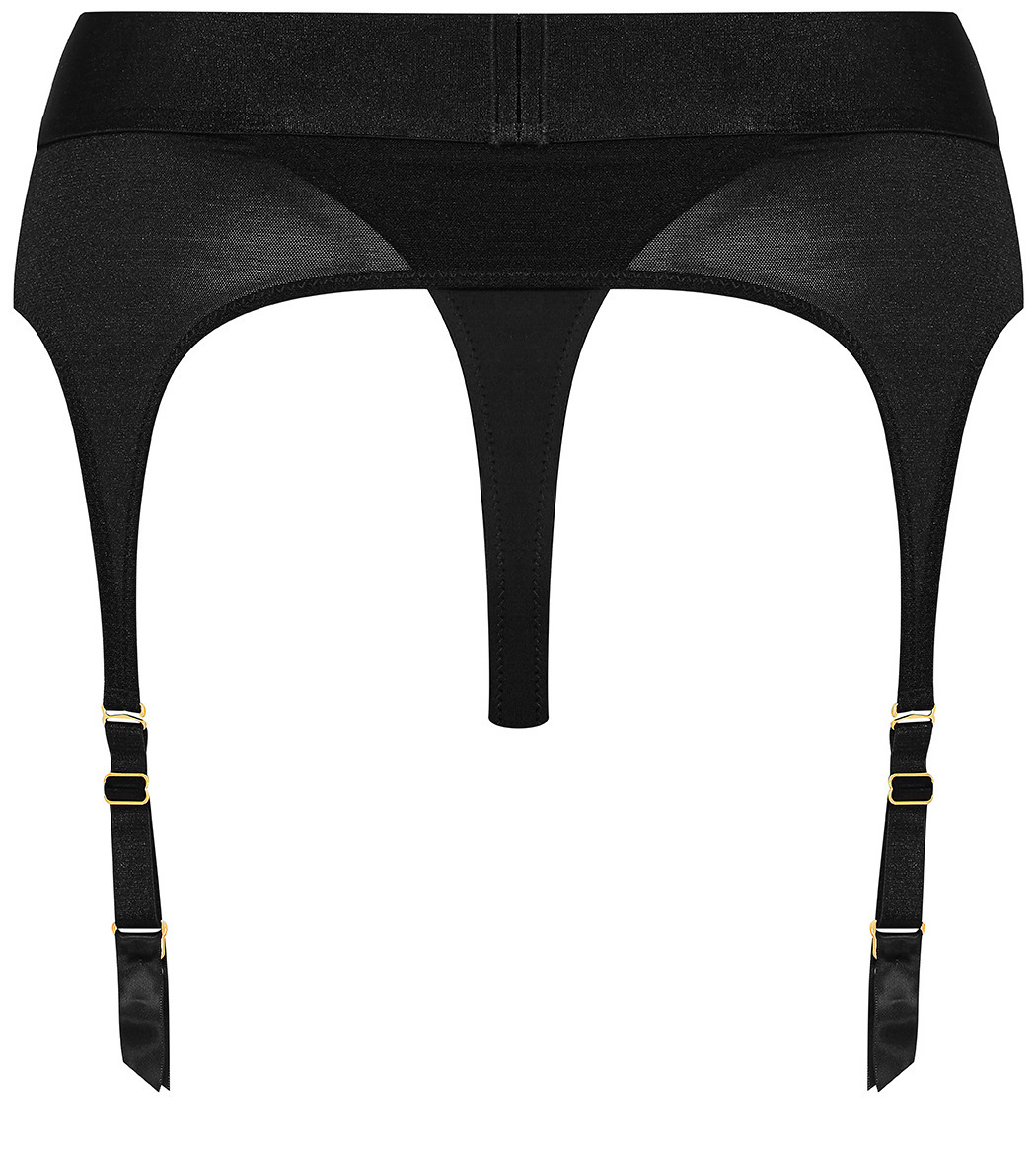 Postroj je ušitý z kombinace měkké a elastické látky a průsvitné síťoviny a v pase má širokou gumu pro pohodlnější nošení. Podvazkové pásky jsou délkově nastavitelné a upnete do nich libovolné punčochy.