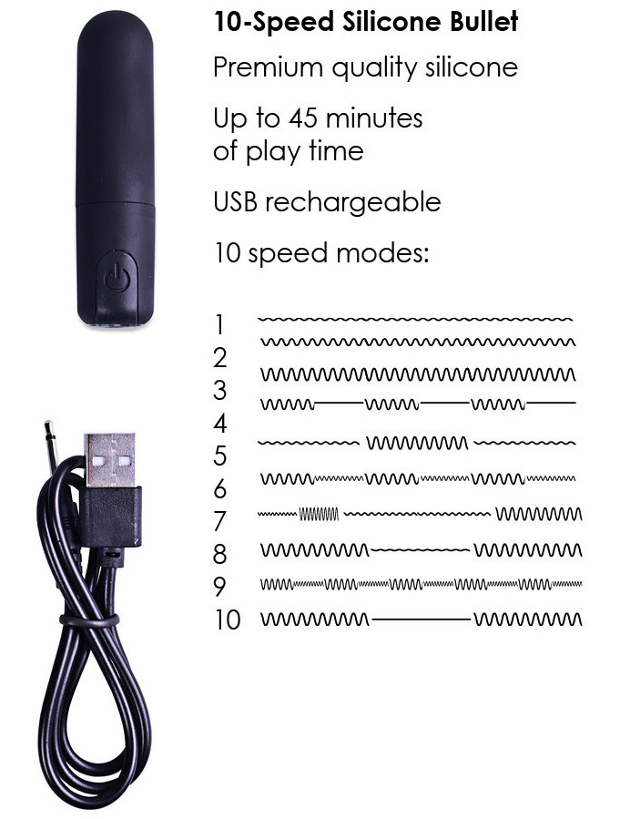 Patrona je odolná proti stříkající vodě, můžete ji využít i jako klasický minivibrátor na potěšení všech citlivých místeček na těle a nabíjí se pomocí USB kabelu.