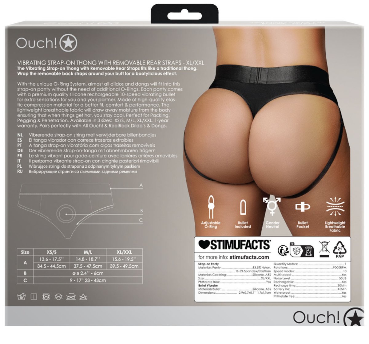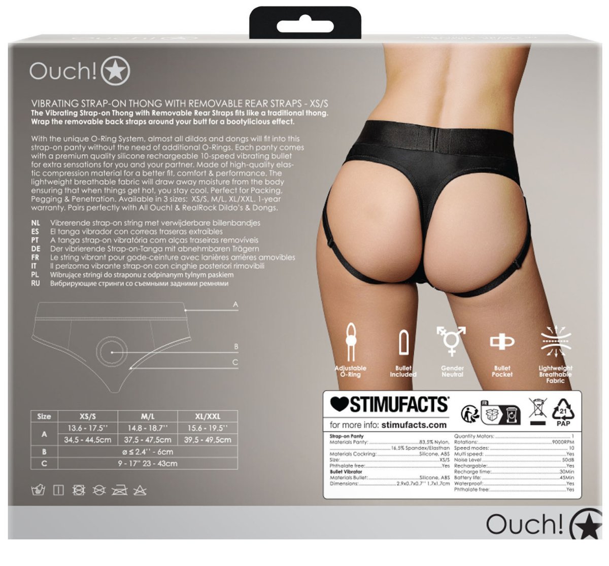 Strapon tanga mají O-kroužek pro připnutí dilda či vibrátoru a vibrační patronu, kterou lze umístit hned na dvě místa.
