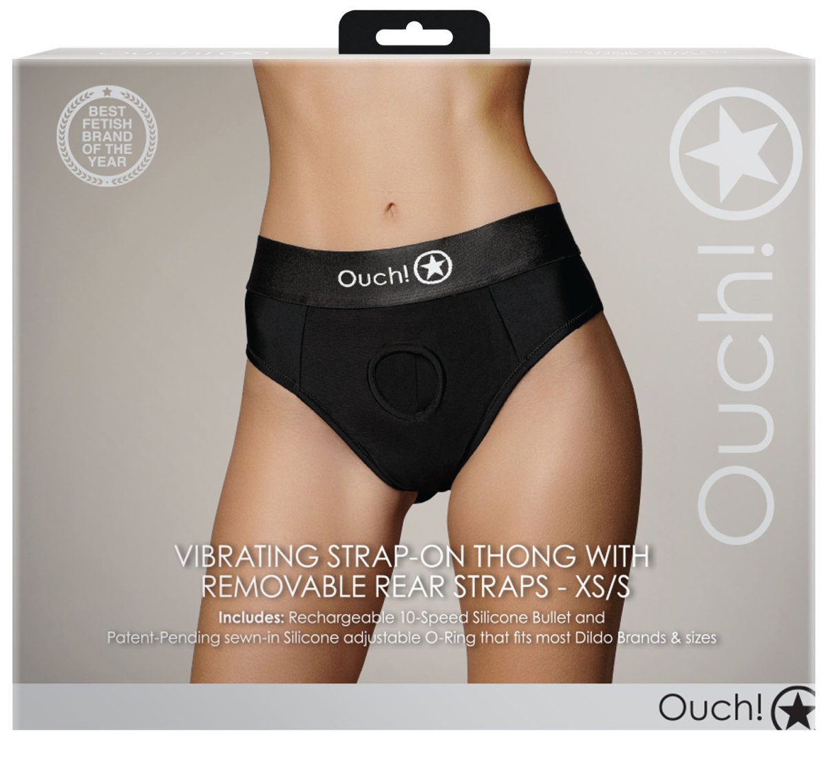 Univerzální strapon tanga s vibrační patronou Ouch!