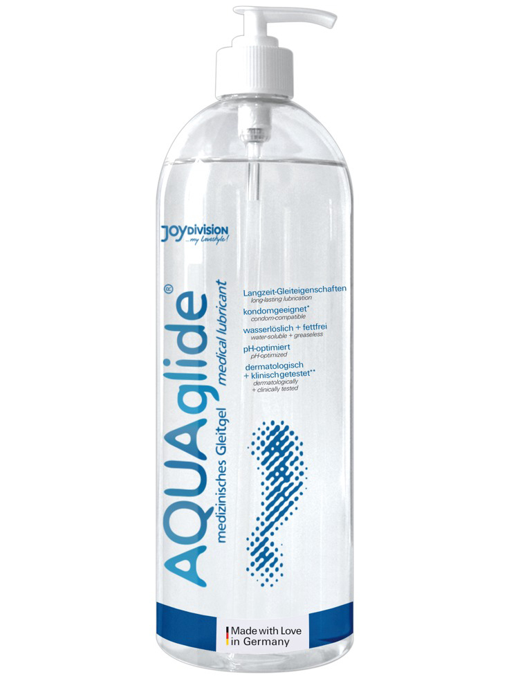 Univerzální lubrikační gel AQUAglide dostanete ve velkém litrovém balení s praktickou dávkovací pumpičkou.