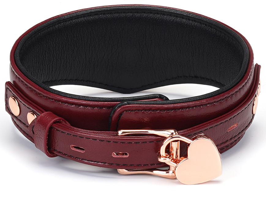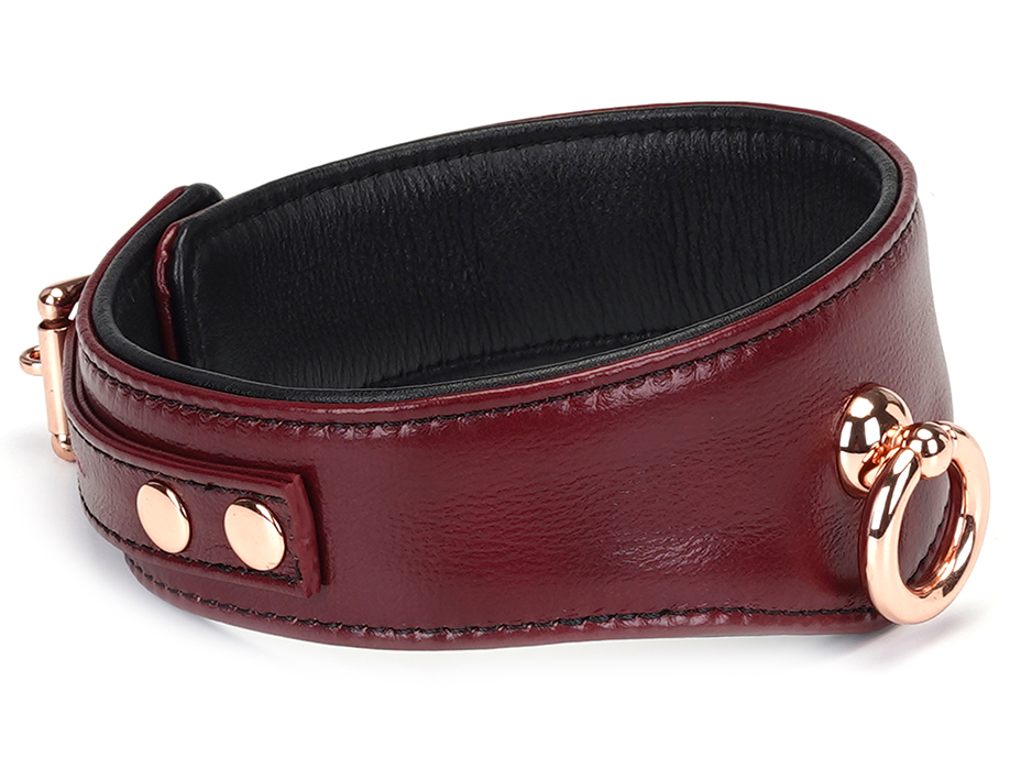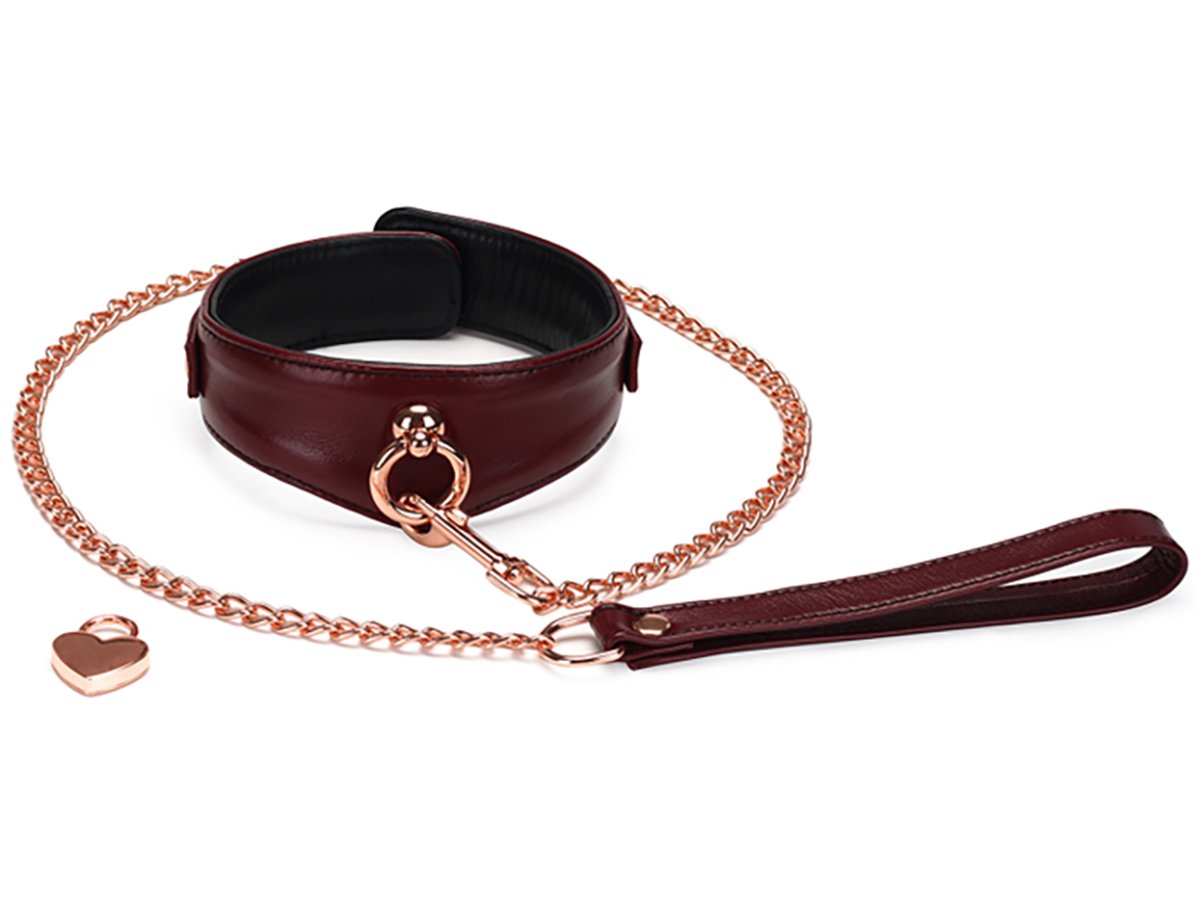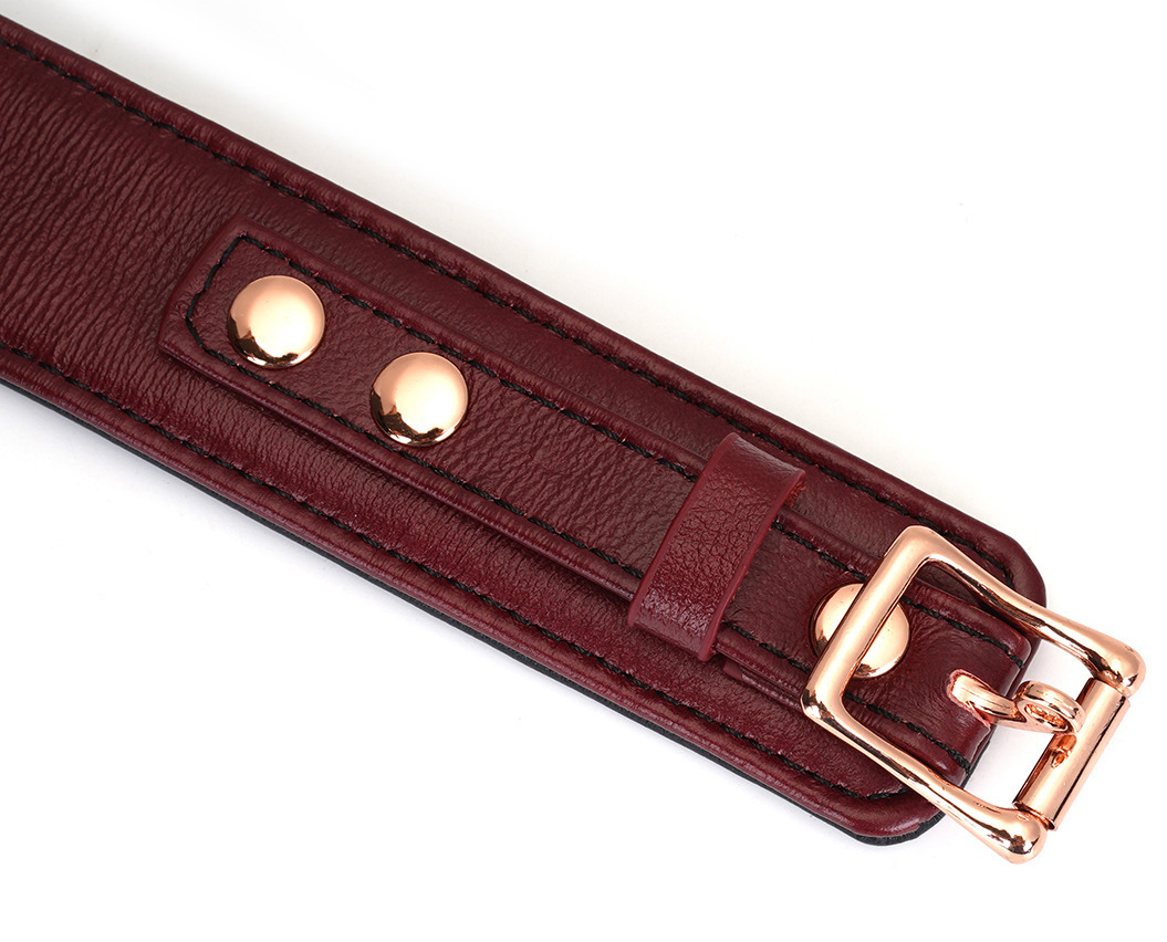 Uzamykatelný kožený obojek s vodítkem Liebe Seele Wine Red
