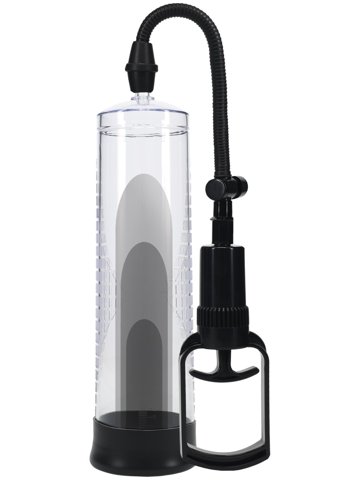 Transparentní válec s měřicí stupnicí v cm vám umožní sledovat celý vzrušující proces. Podtlak uvolníte pomocí ventilku na hadičce.