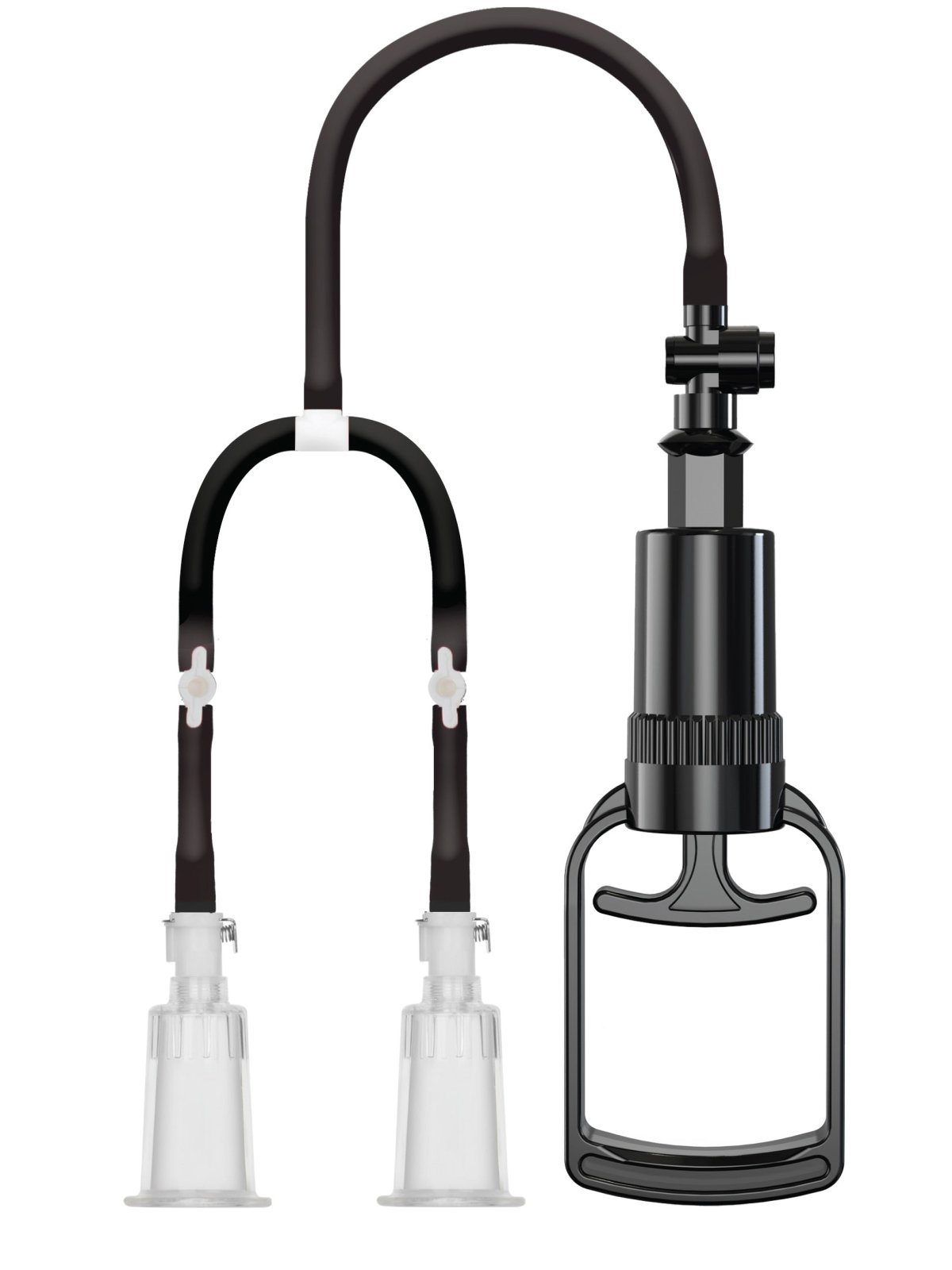 Každá z hadiček má šikovný zavírací ventil – můžete použít oba kalíšky najednou, nebo jen jeden z nich (lze využít třeba i pro prokrvení klitorisu). A až budou obě bradavky dostatečně prokrvené, podtlak snadno uvolníte zmáčknutím ventilku.