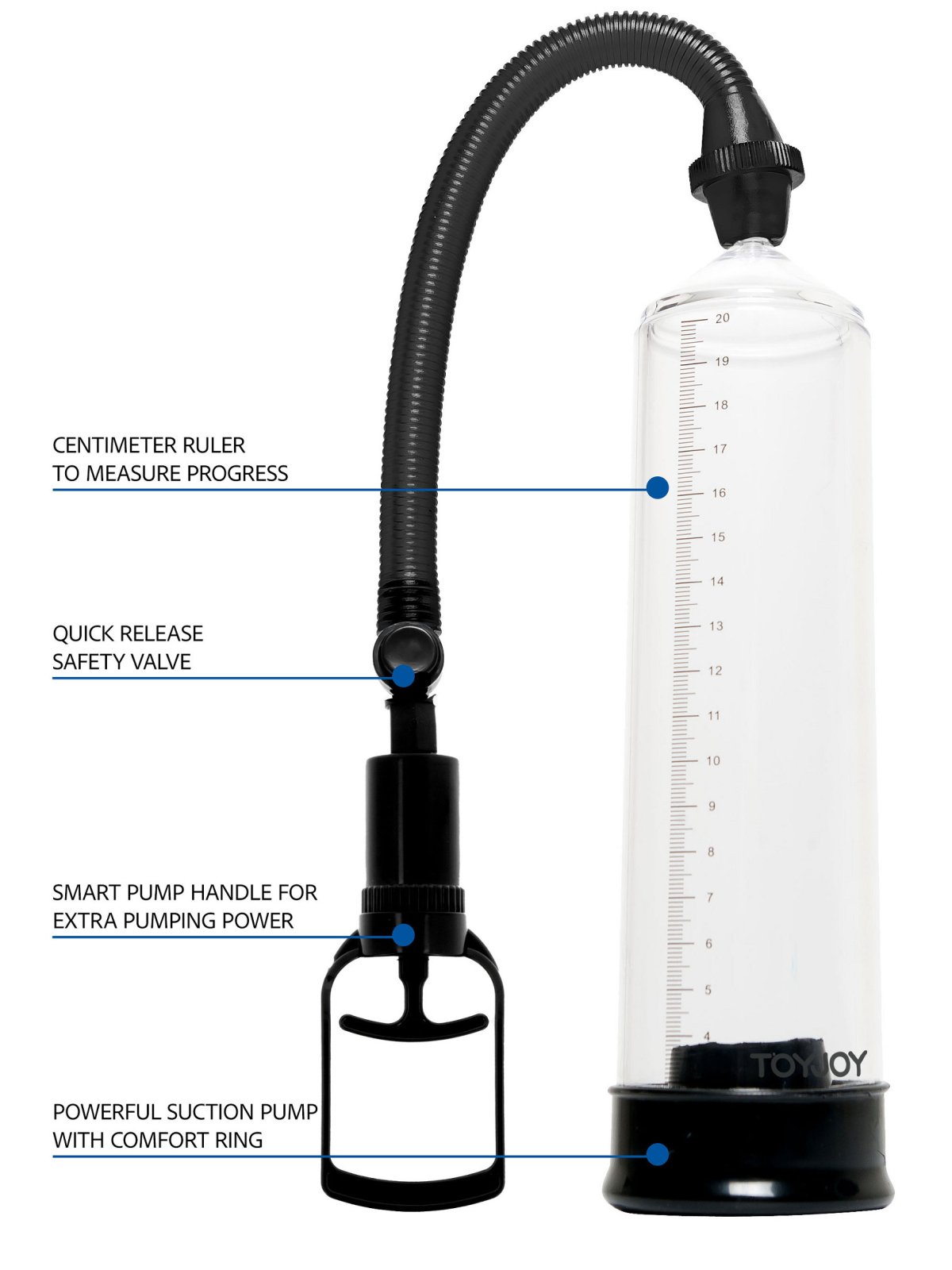 Transparentní válec s měřicí stupnicí v cm vám umožní sledovat celý vzrušující proces. Pevná manžeta zajistí dokonalé utěsnění pumpy a podtlak uvolníte pomocí ventilku na hadičce.