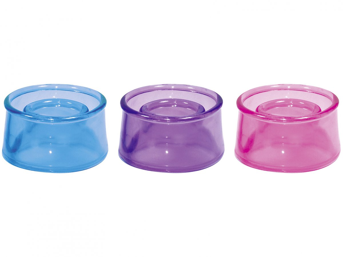 K pumpě dostanete hned tři elastické manžety – modrou (o vnitřním průměru 2,5 cm), fialovou (3 cm) a růžovou (s průměrem 3,5 cm).
