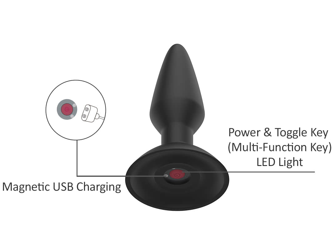 Jak se ovládá? Krátkým stiskem tlačítka zapnete kolík do stand-by módu, dalším spustíte vibrace a přepínáte mezi vibračními programy. Podržením tlačítka po dobu 3 sekund kolík vypnete.