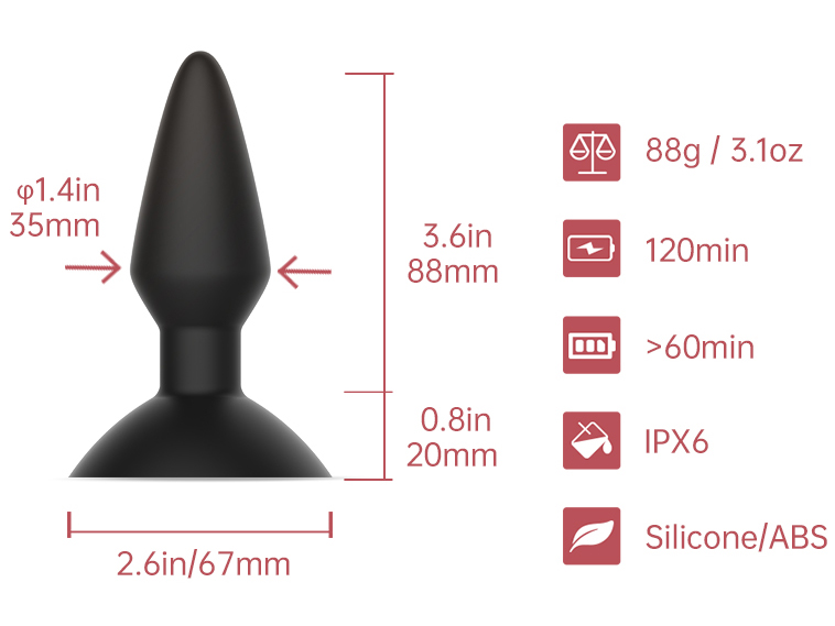 Kolík je voděodolný (IPX6 – ochrana před intenzivně tryskající vodou) a vyrobený ze silikonu, který je pevnější na dotek, bezpečný pro lidské tělo a příjemný na omak.
