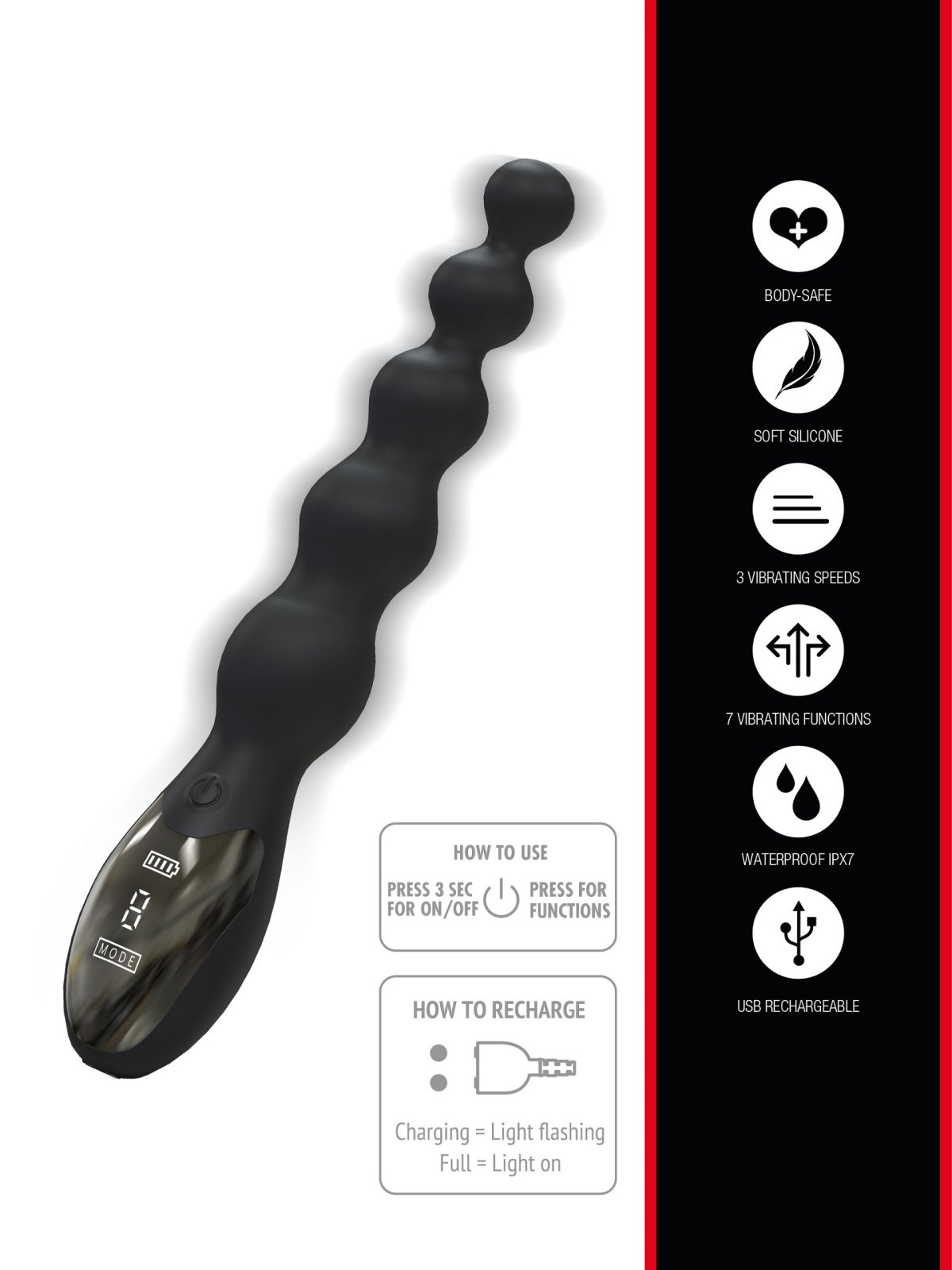 Vibrační kuličky mají extra silné a hluboké vibrace, které pocítíte v každé kuličce. Mají displej, na kterém uvidíte aktuálně zapnutý program i stav baterie.