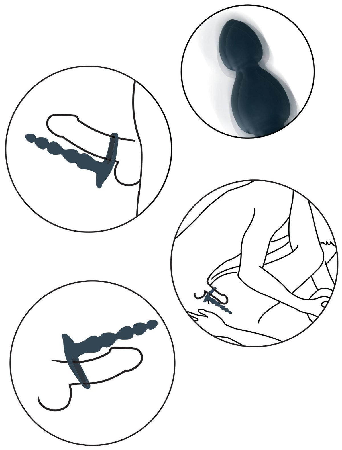 Kuličky mají elastický kroužek na penis, pomocí kterého dobře drží na místě – penis při sexu zasunete do vaginy, kuličky do análního otvoru.