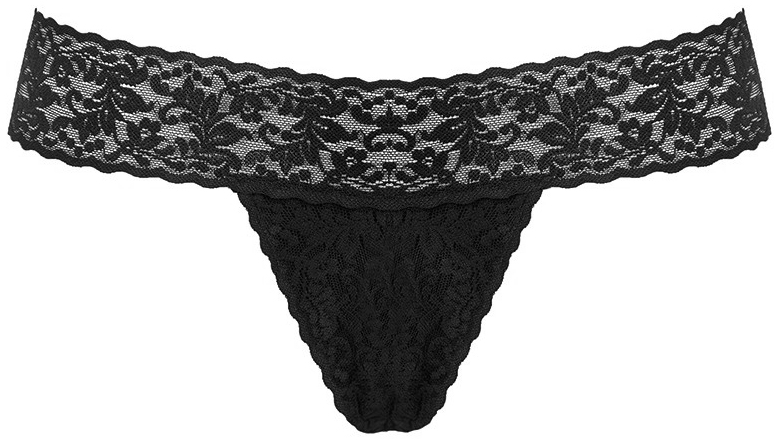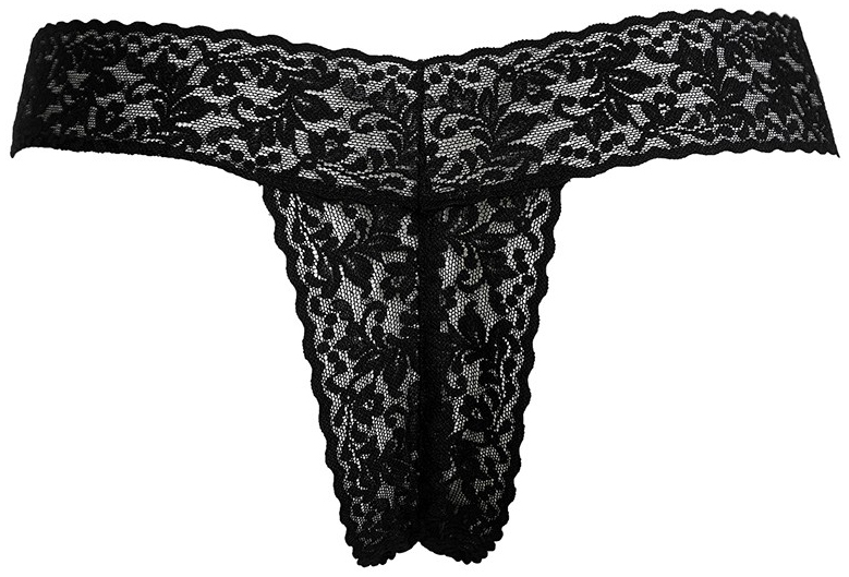 Kalhotky jsou ušity z elastické a průsvitné krajky, mají otevřený rozkrok a kapsu na vibrační patronu.