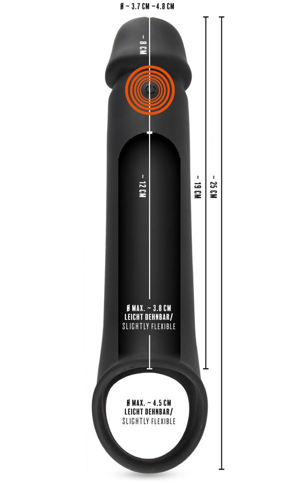 Návlek Rebel prodlouží penis o 8 cm a navíc má extra silné a hluboké vibrace. Dá se ovládat dálkovým ovladačem s dosahem až 12 metrů.