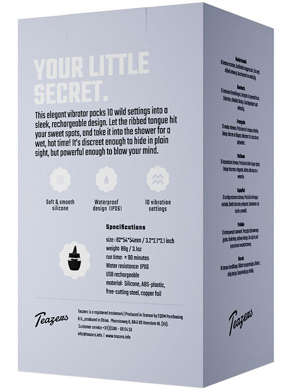 Stimulátor napodobuje orální sex pohyblivým vibračním jazýčkem. Vibrace jsou extra silné a hluboké a celkem se můžete těšit na 10 stimulačních módů (3 intenzity + 7 vzorů).