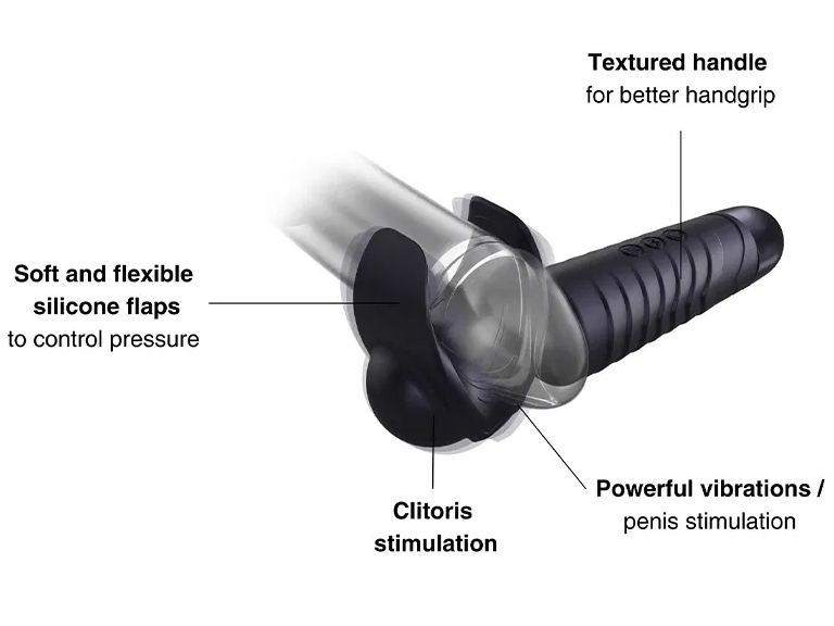 Stimulátor využijete pro erotickou stimulaci i masáže. Penis stačí vložit mezi křidýlka – potěší i muže s větším nádobíčkem a ty, které trápí erektilní dysfunkce.