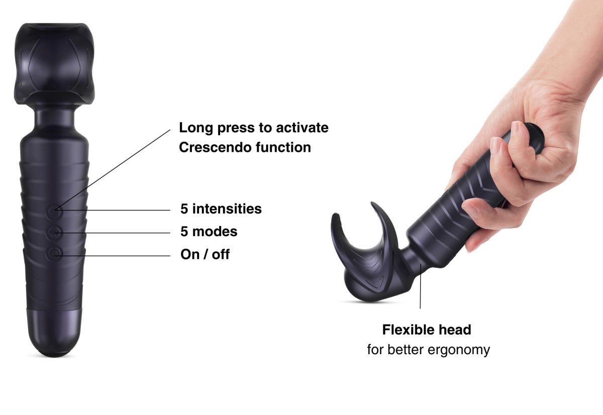 Hlava stimulátoru je ohebná a dobře se přizpůsobí křivkám vašeho těla. Na jedné straně jsou měkká a ohebná silikonová "křidýlka", druhá strana poslouží k masážím. Hodí se jak pro uvolnění bolavých svalů, tak i ke stimulaci erotogenních zón a intimních partií, třeba klitorisu. Potěší tedy i ženy.