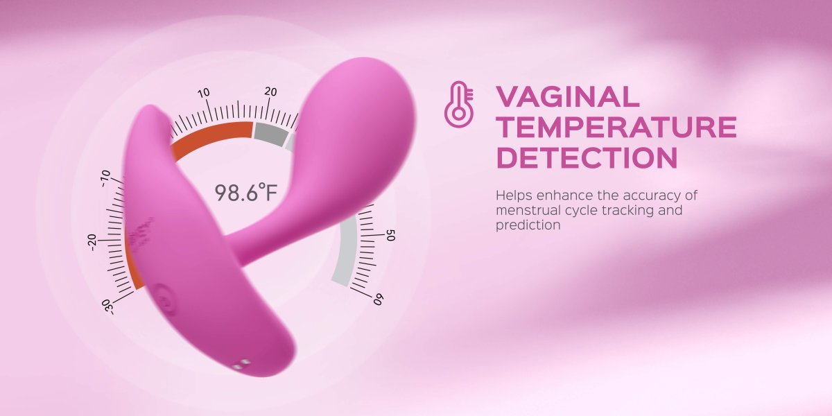 Teplotní senzor slouží k měření vaginální teploty. Když vibrátor používáte a je připojený k mobilní aplikaci, senzor dokáže zaznamenat a sledovat teplotu, která se mění v průběhu menstruačního cyklu a pomáhat určit fázi cyklu, jako je ovulace nebo plodné okénko.