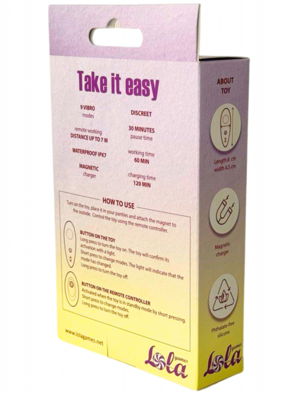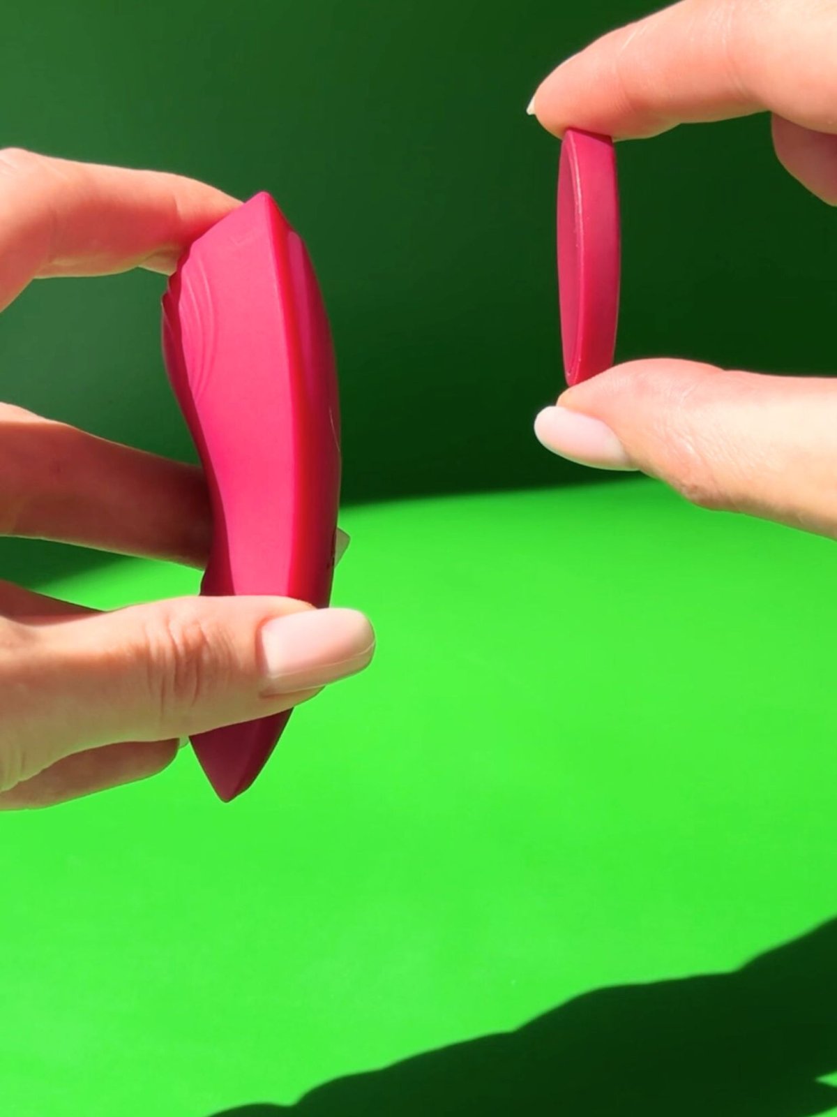 Vibrátor je vyrobený z měkkého a ohebného silikonu a je tvarově uzpůsobený k tomu, aby se dal pohodlně nosit v prakticky jakýchkoliv kalhotkách. Dokonce má speciální magnet, díky kterému v nich bude skvěle držet i během pohybu.