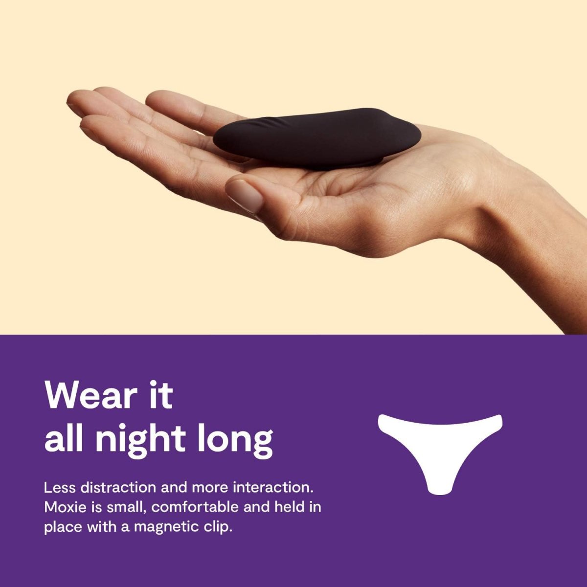 Je tvarově uzpůsobený k tomu, aby se dal pohodlně nosit v prakticky jakýchkoliv kalhotkách. Dokonce má speciální magnet, díky kterému v nich bude skvěle držet i během pohybu.
