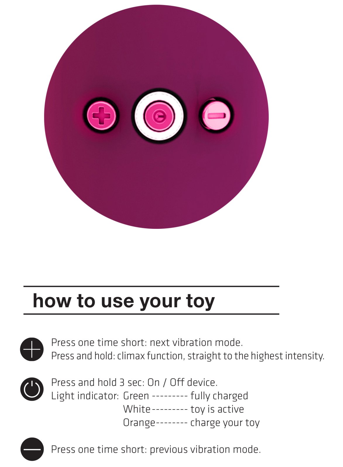 Má extra silné a hluboké vibrace a potěší vás celkem 10 vibračními programy. Navíc má speciální Climax mód – delším podržením tlačítka "+" aktivujete maximální výkon.