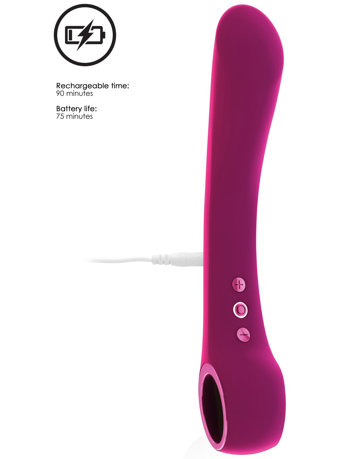 Vibrátor je ohebný a má zahnutou špičku, která je zploštělá. Díky tomu zvládne promasírovat nejen bod G, ale i klitoris.