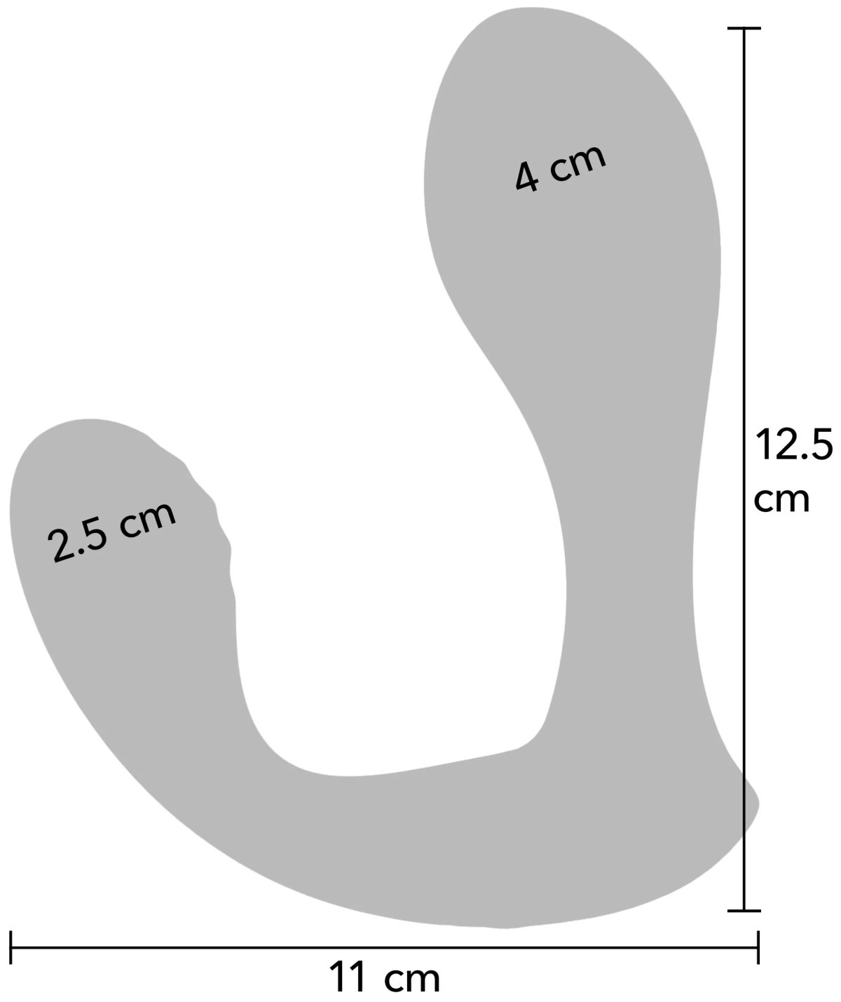 - Rozměry: celková délka 12,5 cm, zasunutelná délka 10 cm, max. průměr 4 cm, délka základny 11 cm
