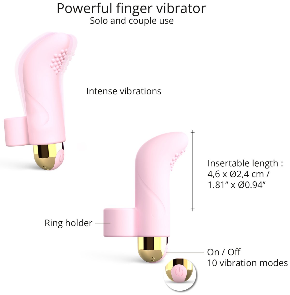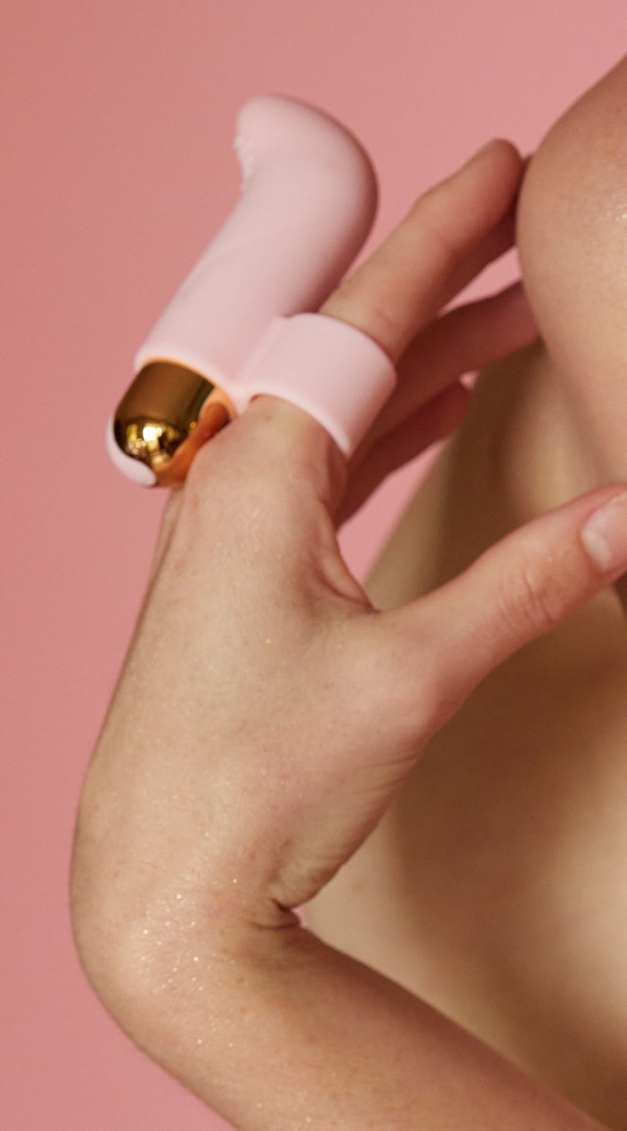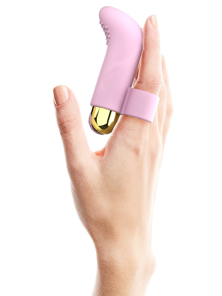 Vibrátor nasadíte na ukazováček a pak jednoduše namíříte vibrace přesně tam, kde je potřebujete.
