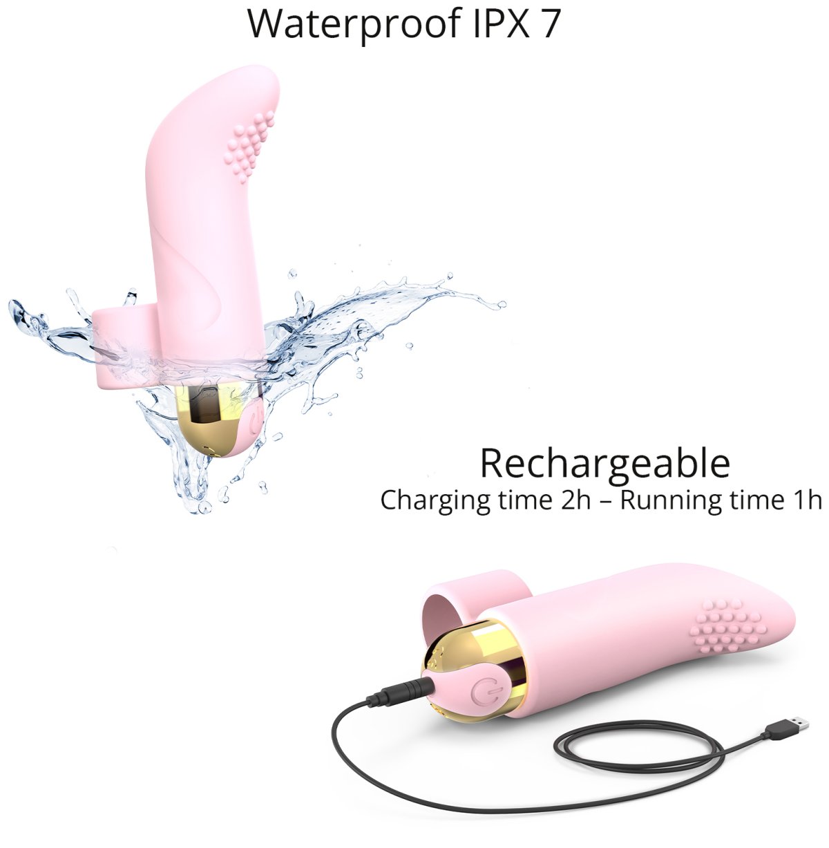 Je voděodolný a vyrobený z ohebného silikonu, který je pevnější na dotek, bezpečný pro lidské tělo a příjemný na omak. Díky pružnému poutku na prst dobře drží na svém místě.