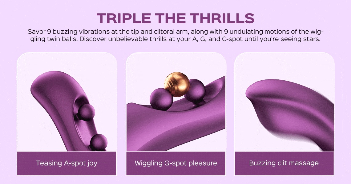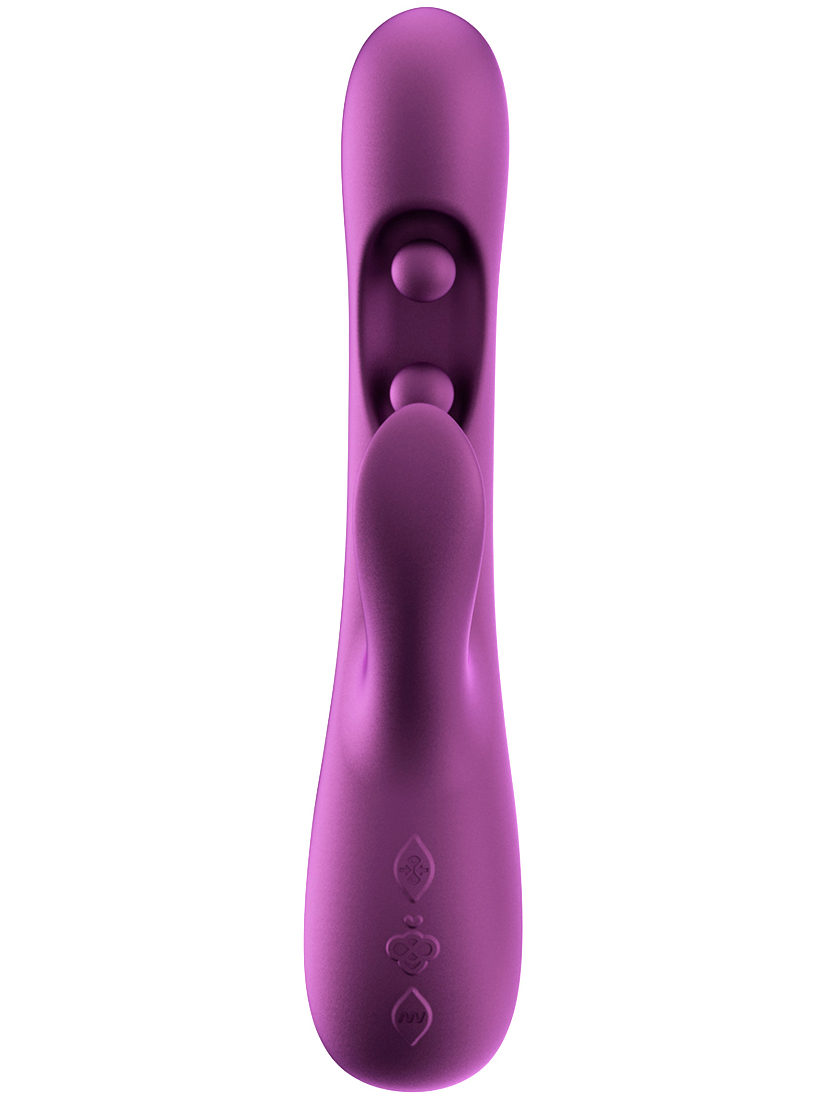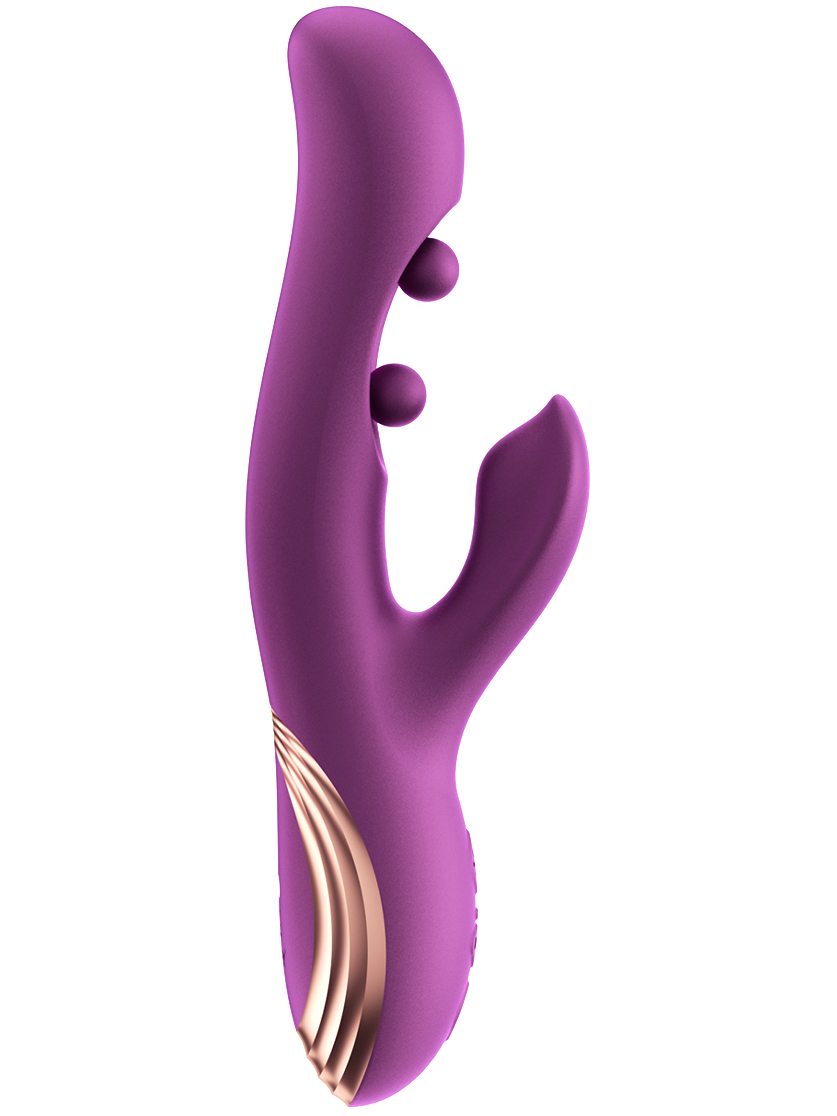 Vibrátor vás potěší trojitou stimulací – bod G si užije vibrace a 2 pohyblivé kuličky, králíček zase provibruje klitoris. Dá se ovládat i mobilem.