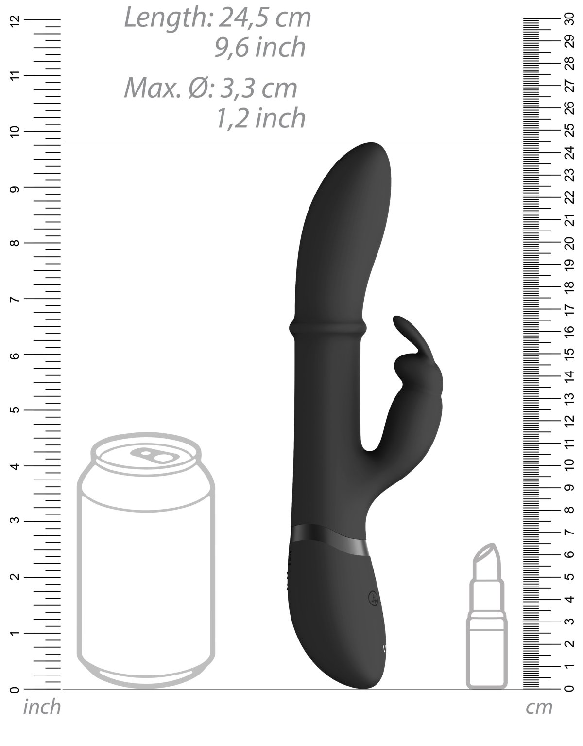 - Rozměry: celková délka 24,5 cm, zasunutelná délka 14 cm, max. průměr 3,3 cm