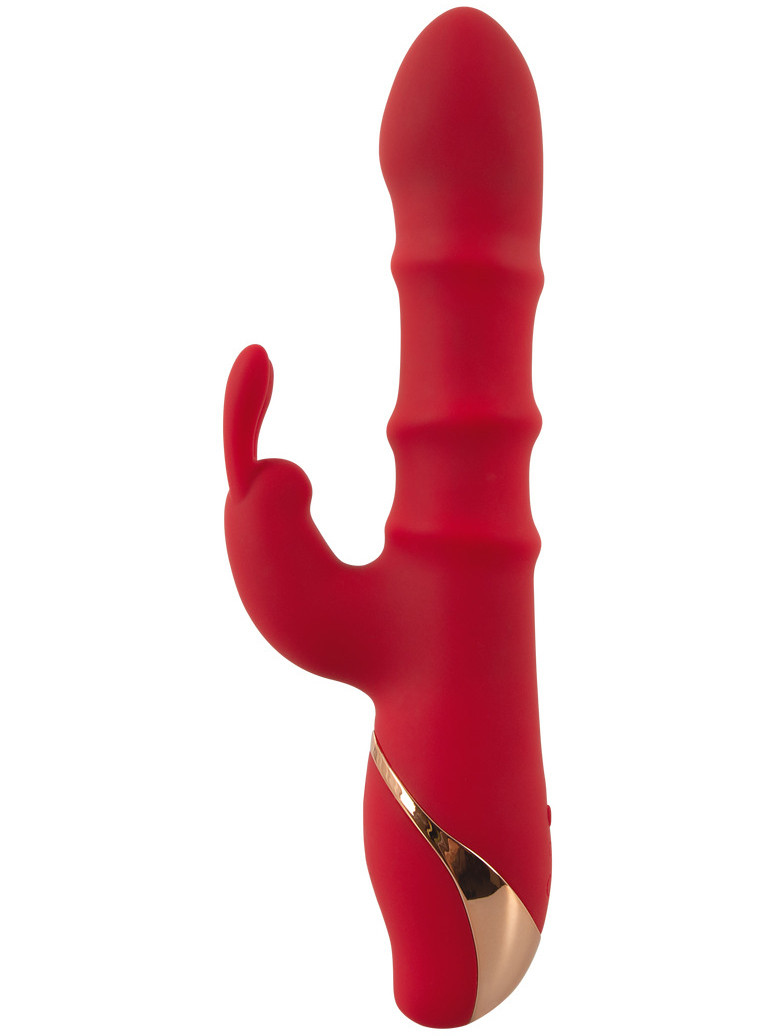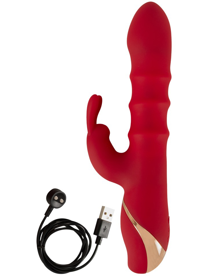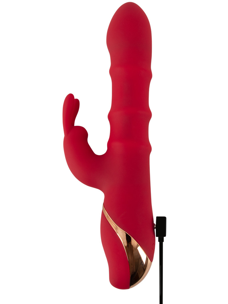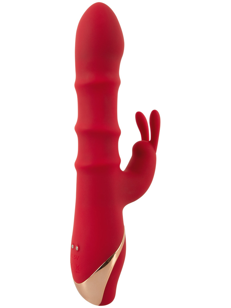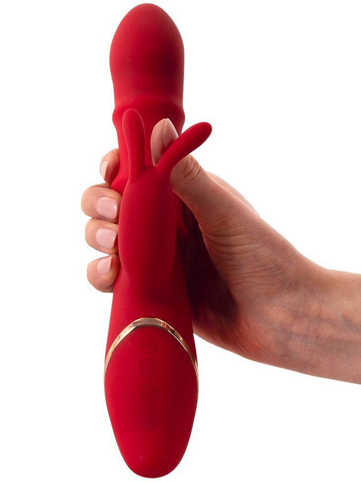 Vibrátor promasíruje bod G a poševní stěny vibracemi a 3 pohyblivými kroužky. Vibrační králíček pak potěší i klitoris.