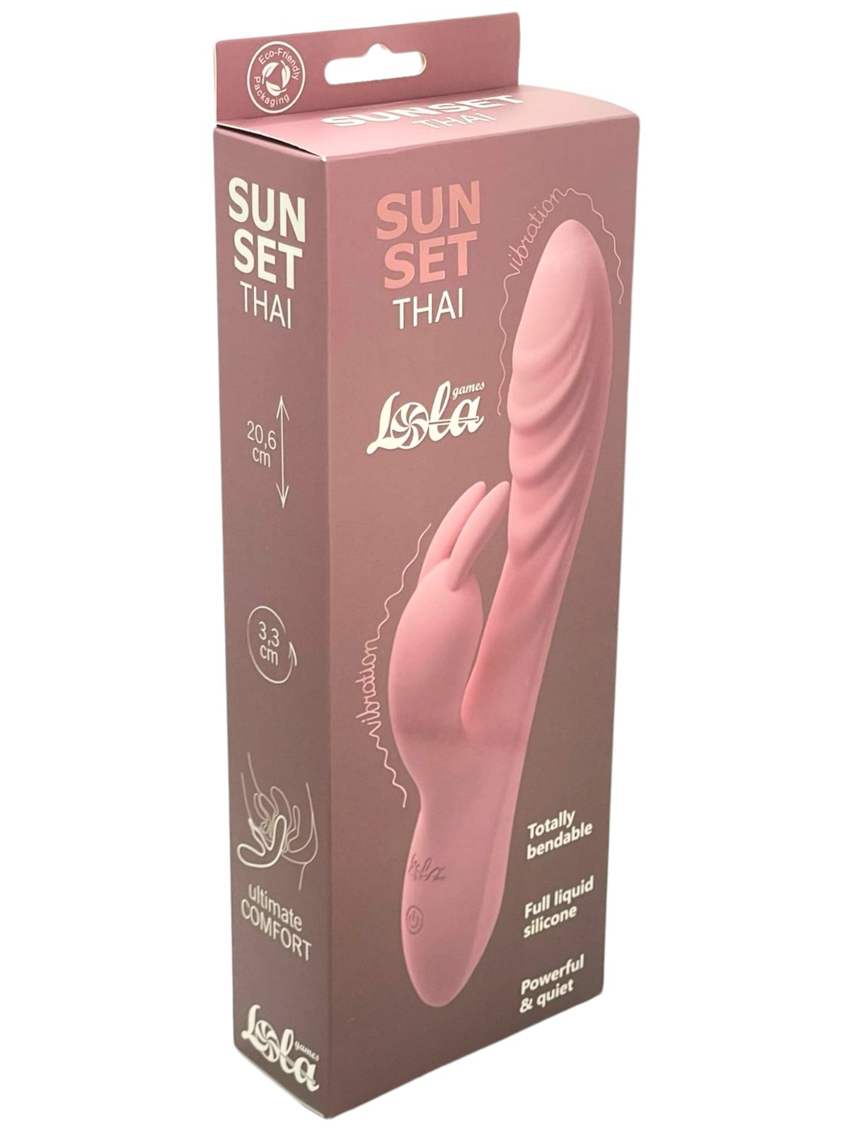 Vibrátor s králíčkem Sunset Thai má silné a hluboké vibrace a provibruje bod G a klitoris současně.