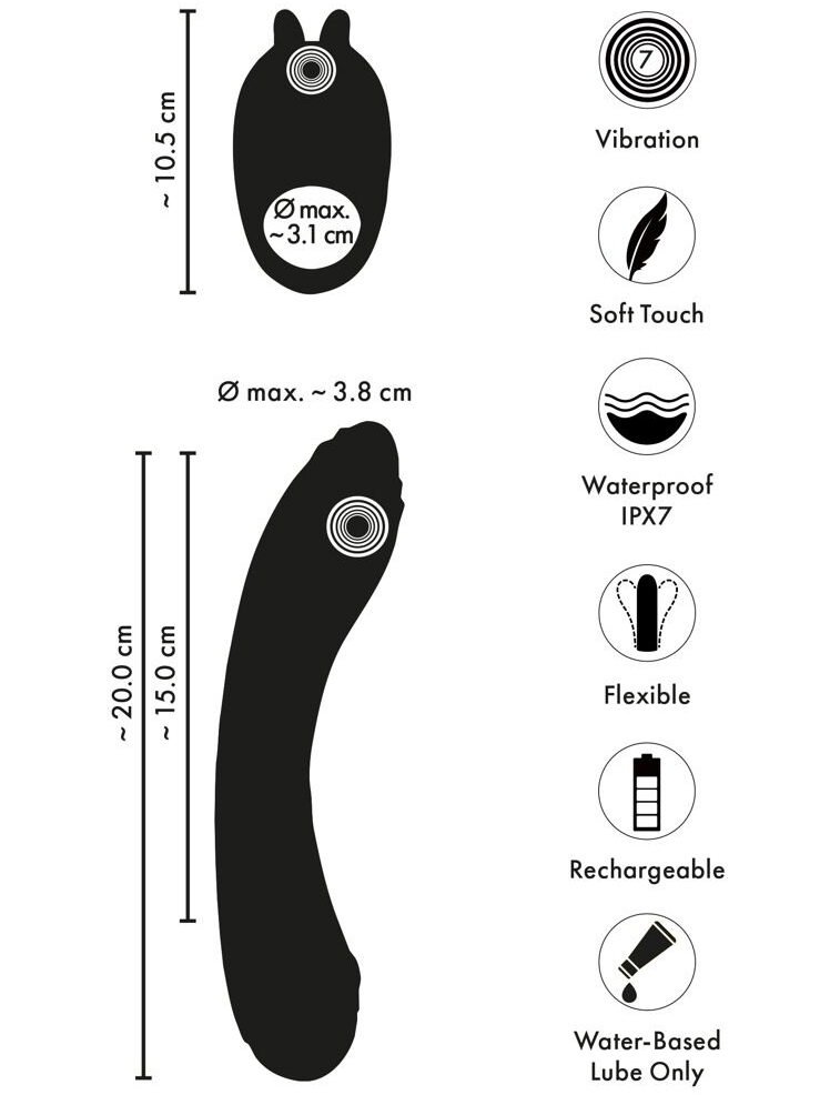 Vibrátor je ohebný, takže se přizpůsobí vnitřním křivkám těla a zajistí pohodlný zážitek.