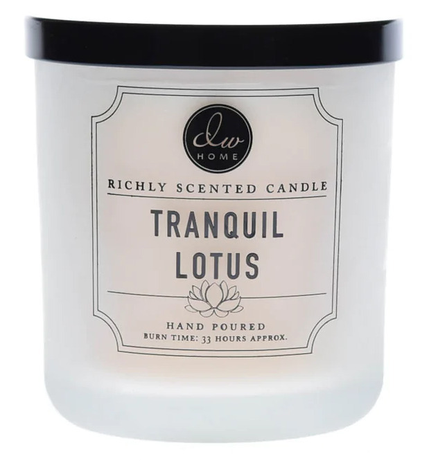 Vonná svíčka Tranquil Lotus od DW Home přinese do vašeho domova sladkou a uklidňující vůni lotosového květu, grapefruitu a jasmínu s tóny santalového dřeva a ambry.
