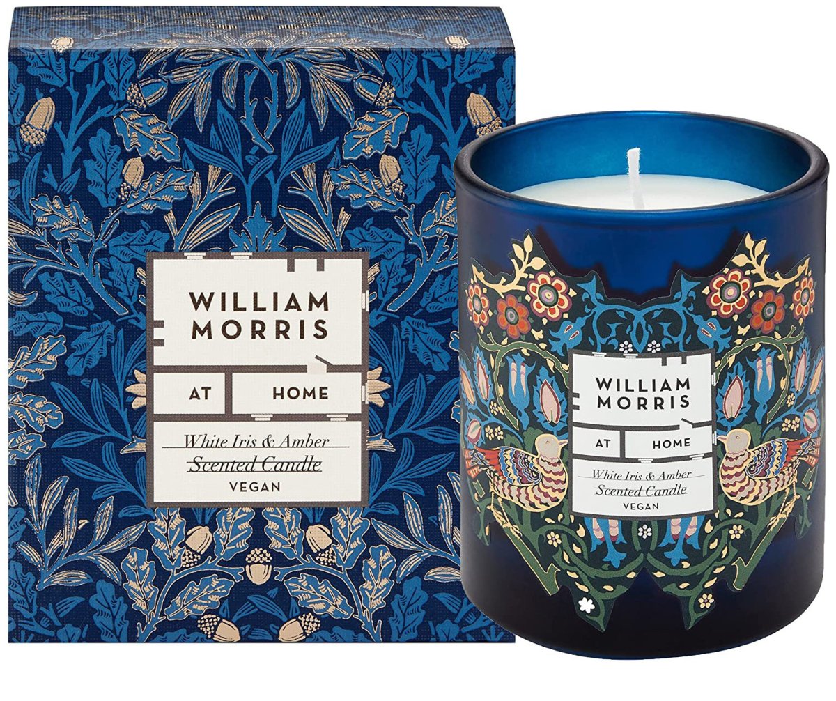 Luxusní vonná svíčka White Iris & Amber z kolekce William Morris At Home od Heathcote & Ivory přinese do vašeho domova pocit klidu a harmonie.