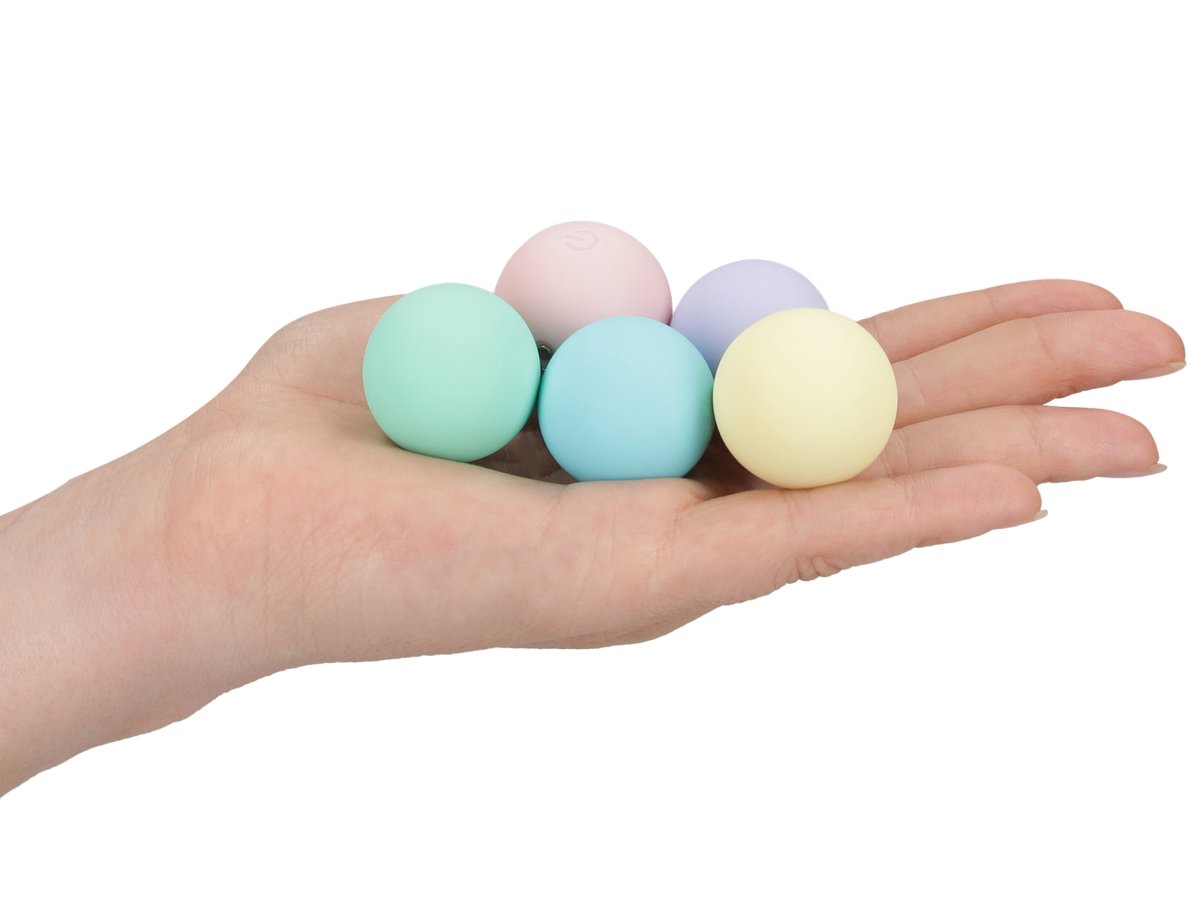 Kuličky mají uvnitř pohyblivé závaží, které při sebemenším pohybu vytváří příjemné chvění a pomáhá k efektivnějšímu tréninku, růžová kulička ukrývá vibrační motorek.